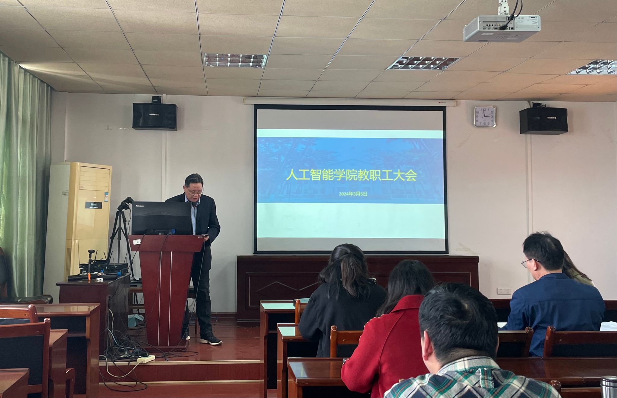 3月5日下午,我院于博达楼418室召开春季学期全体教职工大会,总结上一学期工作,布置新学期的工作任务。会议由学院党委书记蔡其明主持。