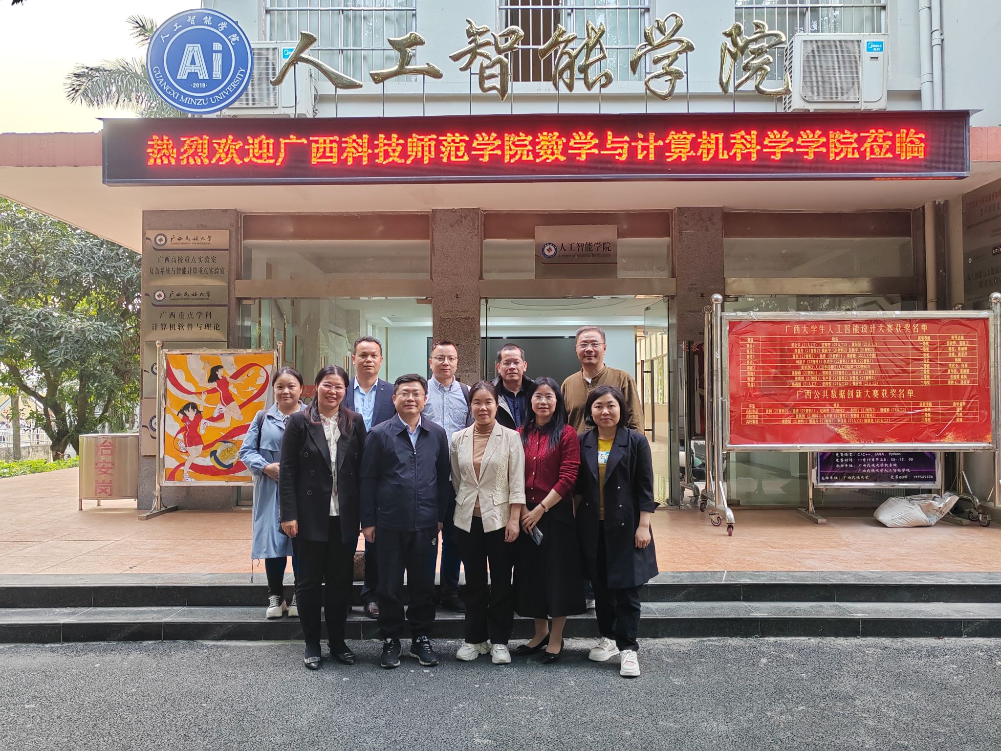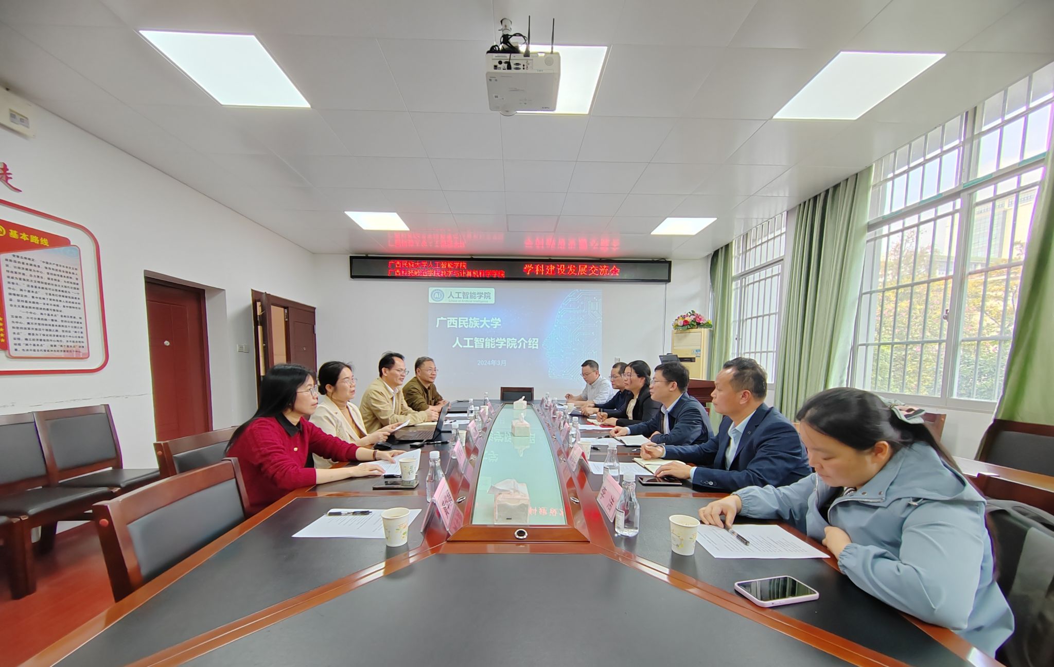 广西科技师范学院数学与计算机科学学院软件工程专业负责人覃国锐、数据科学与大数据技术专业负责人黄天开、人工智能教研室主任李洁、计算机应用基础公共教研室主任王晓亮,以及我院软件工程系主任张纲强、计算机科学与技术系主任张桂芬、智能科学系主任黄华娟参加会议交流。