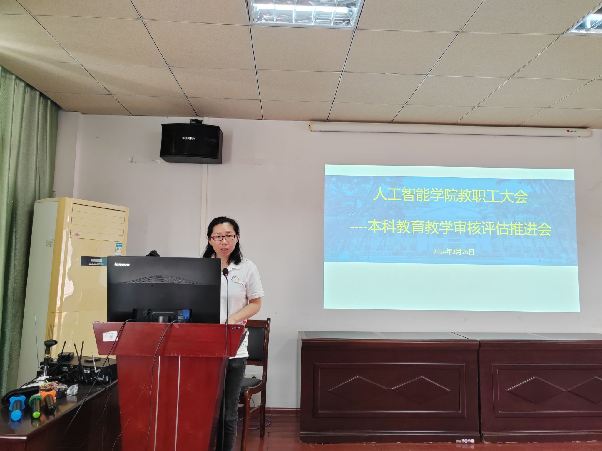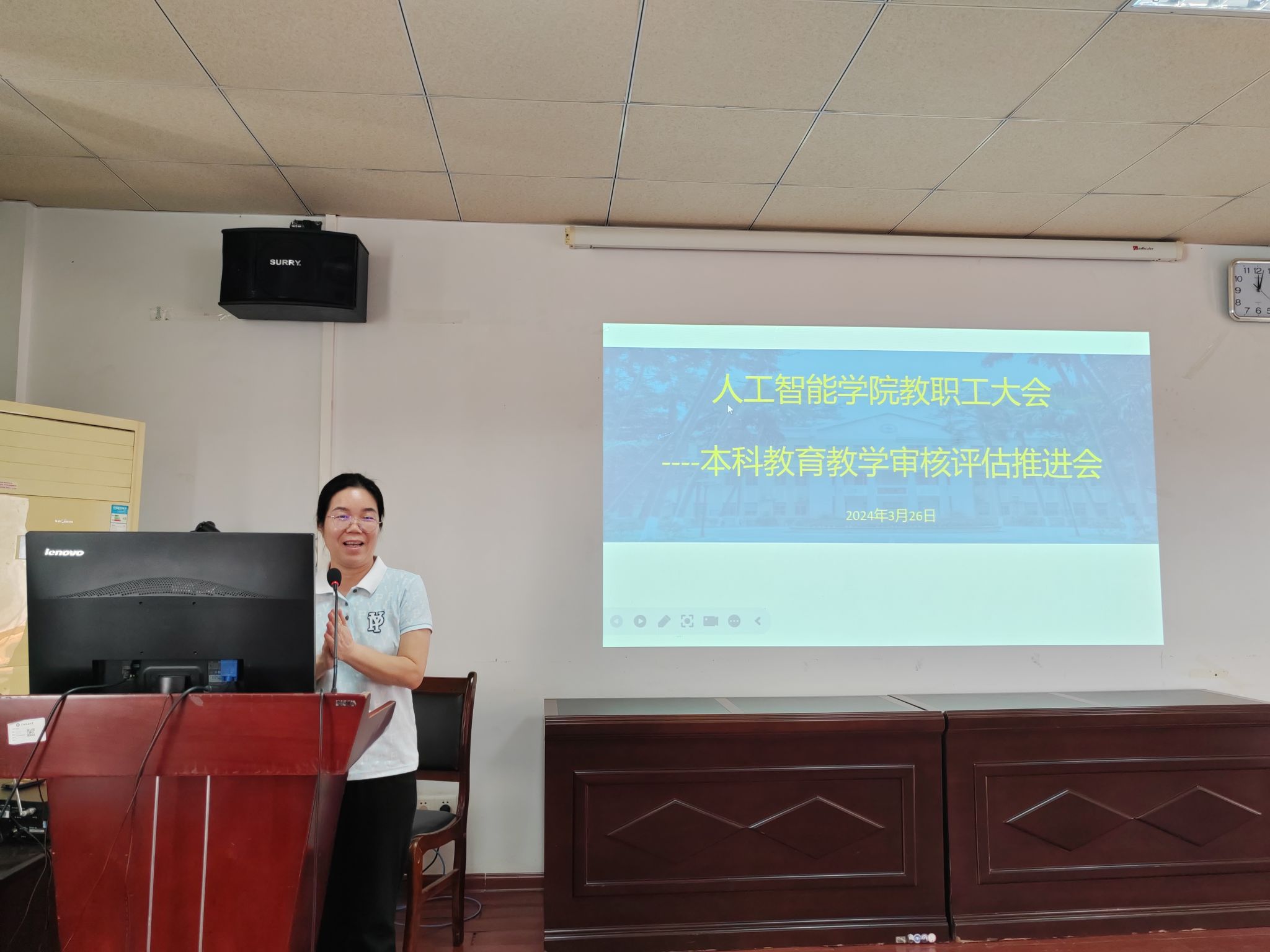 葛丽娜从本科教育教学评估时间表、专家听课的指标、目前存在的不足、下一步需要加强的工作四个方面进行通报,要求各系部、教研室及时整改问题,补齐各项相关材料。