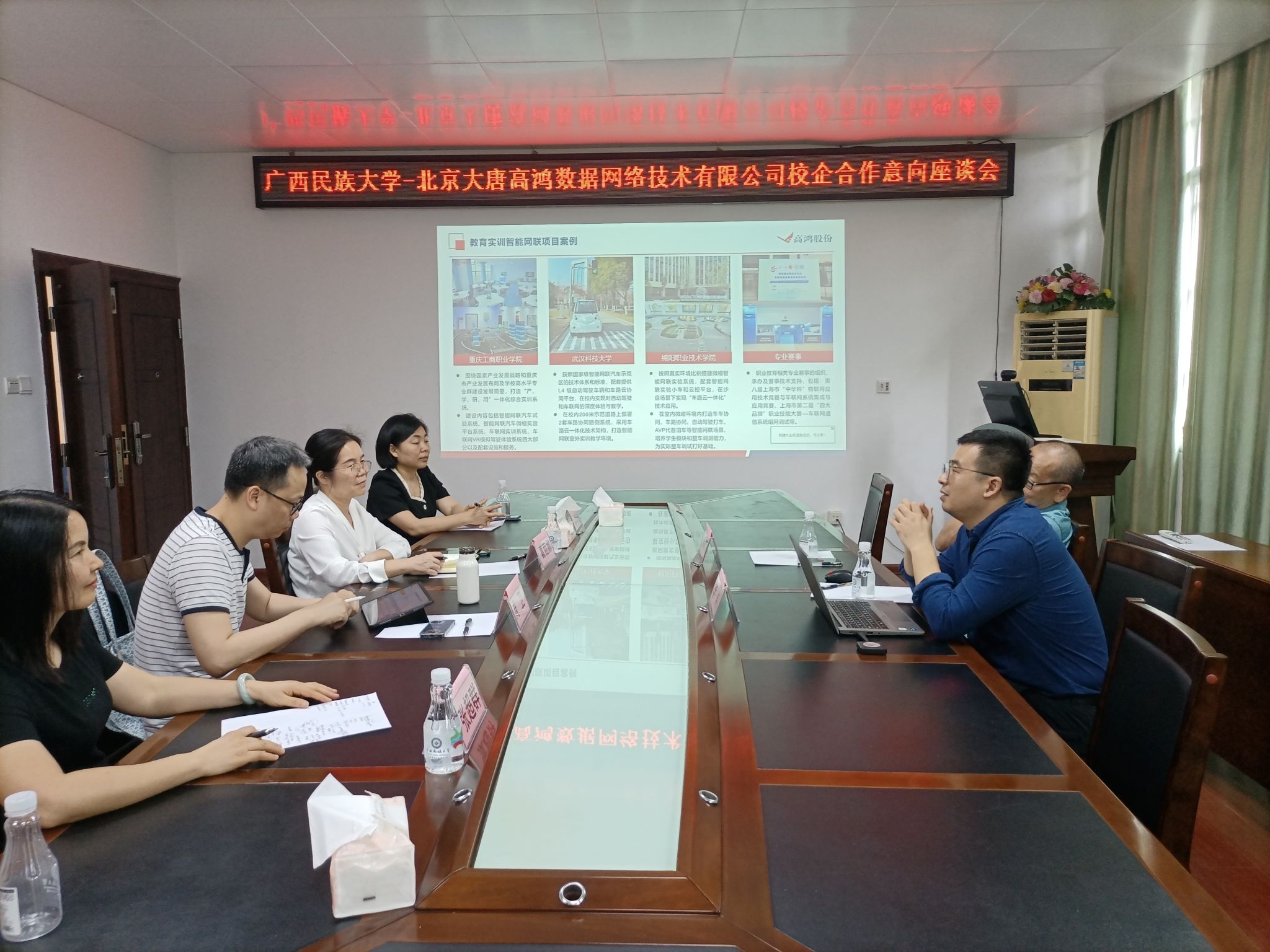 3月27日下午,北京大唐高鸿数据网络技术有限公司代表与我院负责人于博达楼405室开展校企合作意向座谈会。北京大唐高鸿数据网络技术有限公司副总经理李炜、工程师陈海帆,我院院长葛丽娜、院长助理周卫、智能科学系主任黄华娟、教师张超群参加会议。