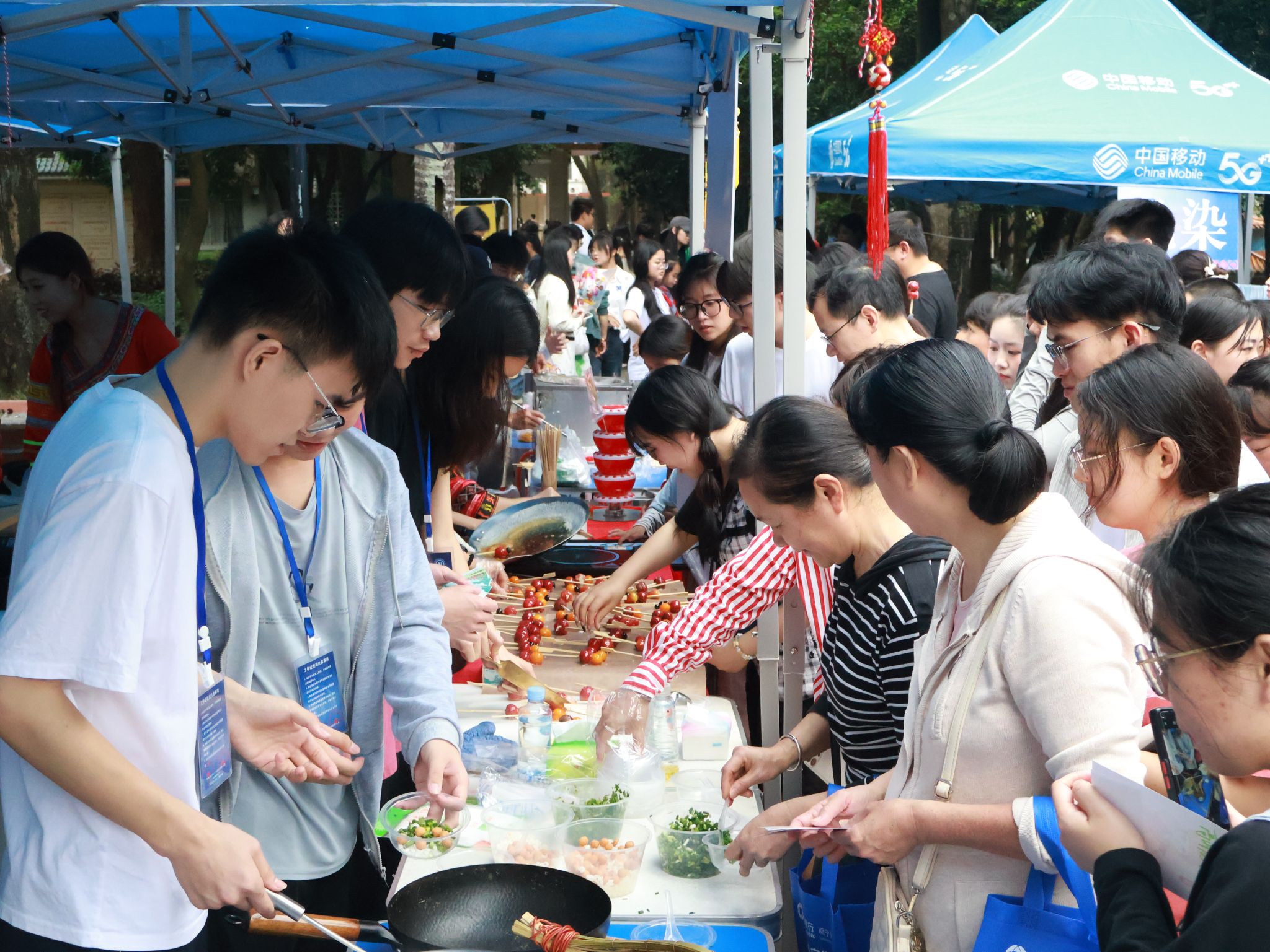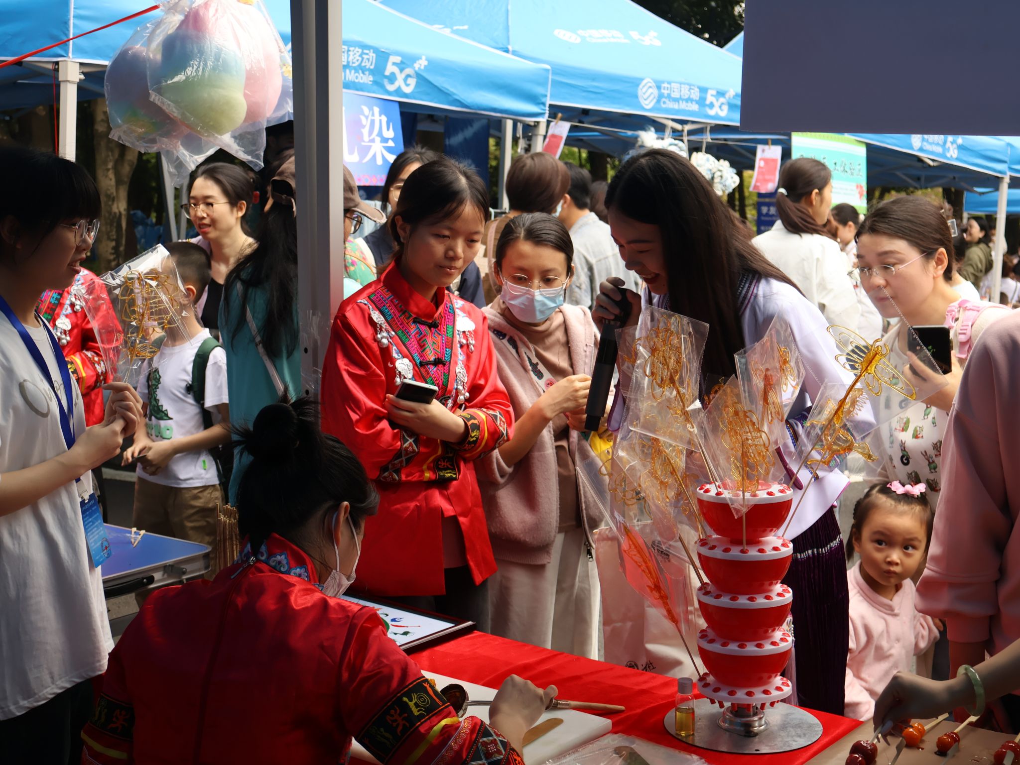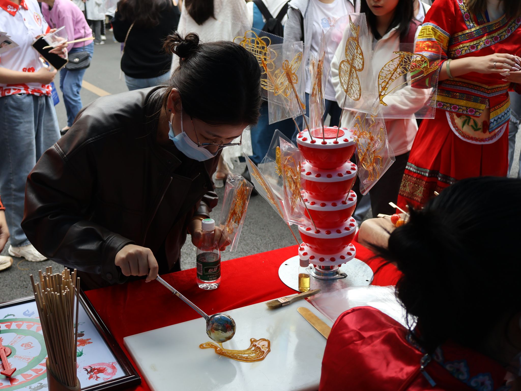 展区内分别设置了非遗瑶族油茶、糖画、糖葫芦制作和棉花糖制作等民族特色项目,我院特别邀请非遗传承人到场指导制作。现场同学能够亲身体验传统手工艺品的制作,充分感受到中国非物质文化遗产的魅力,唤起对中华优秀文化的热爱,提升了对非遗文化传承保护的意识。