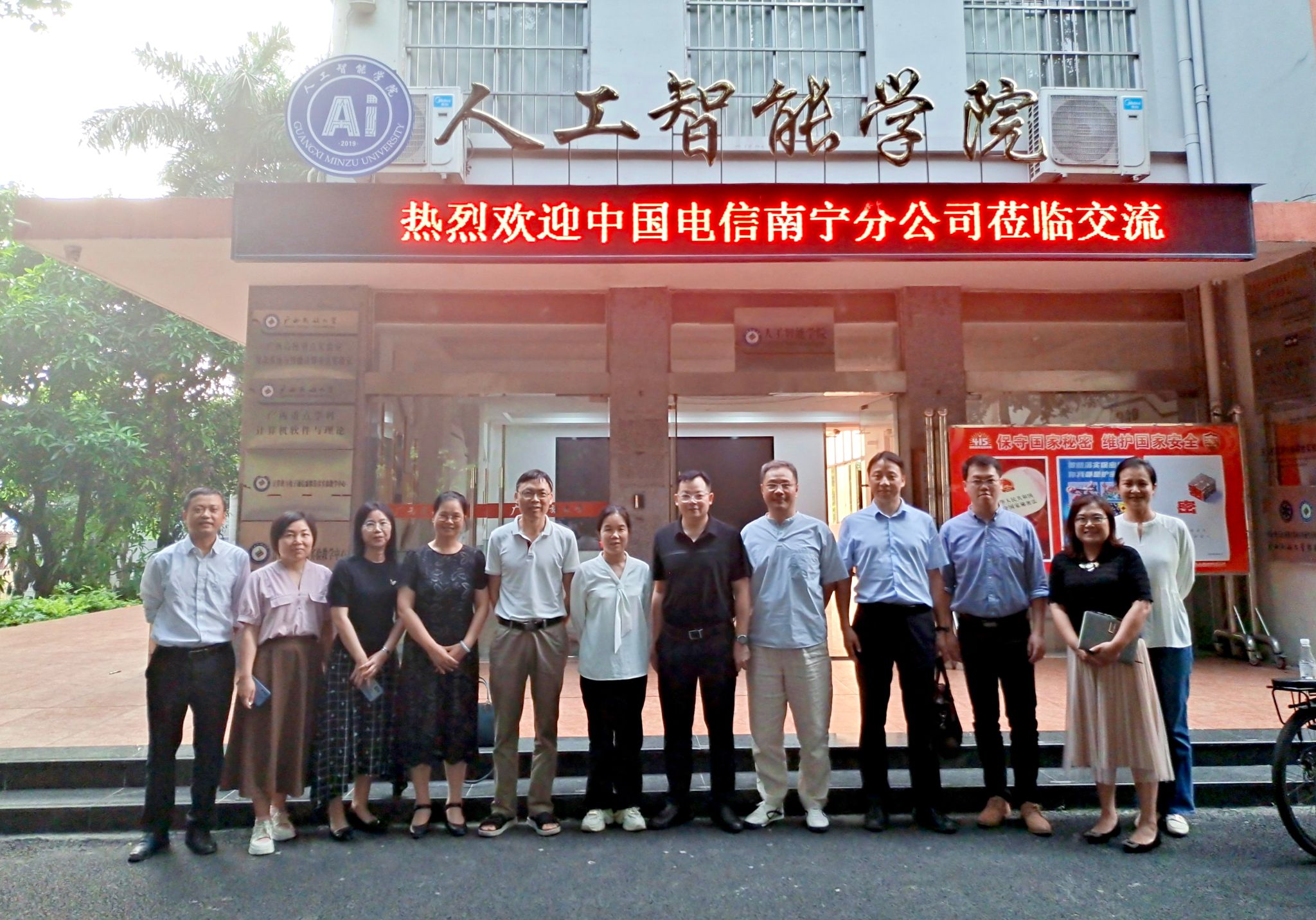 4月25日下午,我院与中国电信南宁分公司于博达楼405室洽谈校企合作事宜。我院院长葛丽娜、软件工程系主任张纲强、计算机科学与技术系主任张桂芬、智能科学系主任黄华娟等教师代表、中国电信南宁分公司副总经理韦晓波等一行8人参加座谈会。