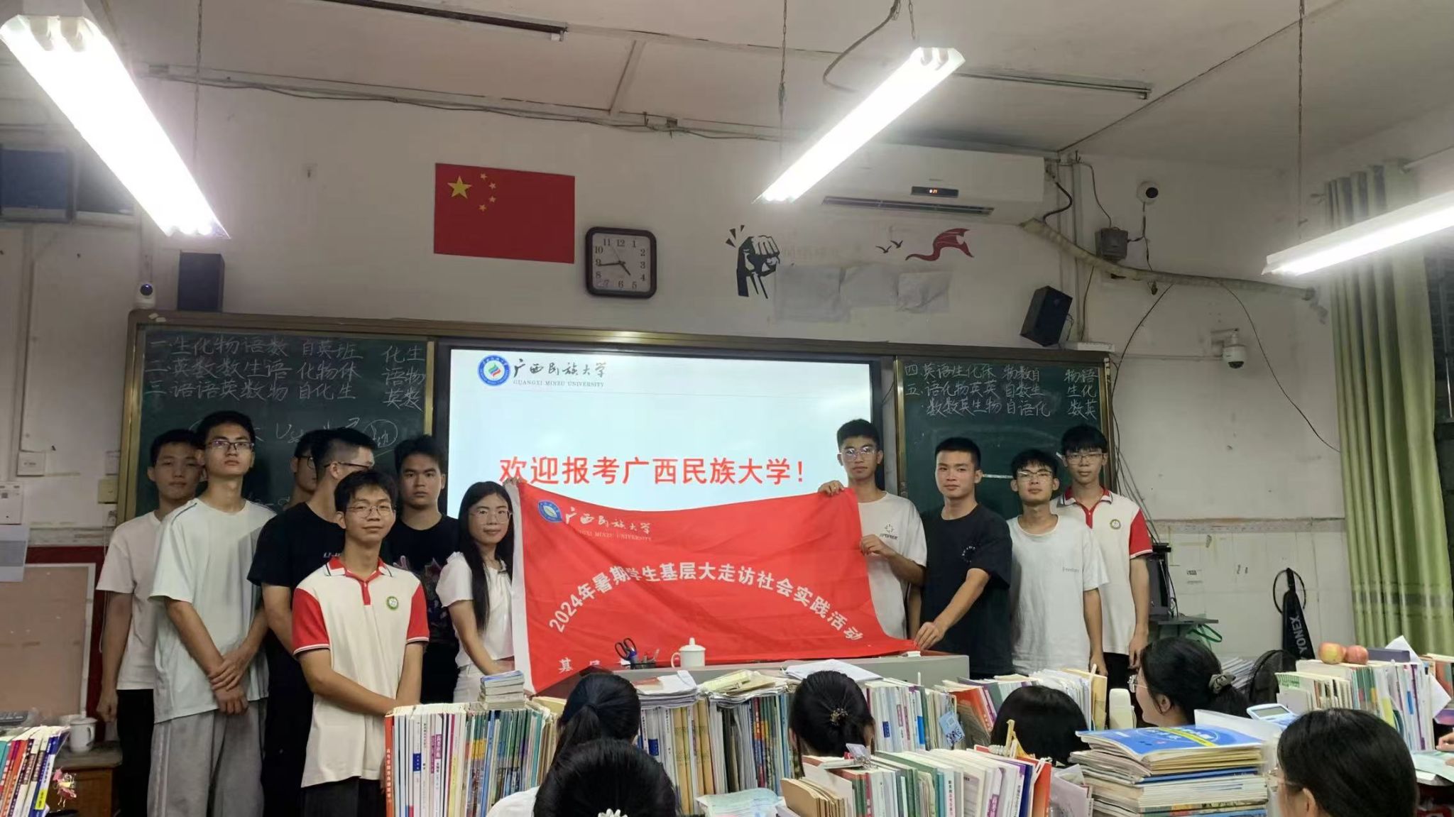 此次暑期基层大走访不仅促进了我院青年学子的个人成长与社会责任感的提升,也为高中生们提供了宝贵的指导和激励;同时,通过加强与校友的联系与合作,进一步提升了学校的社会影响力和知名度。相信在未来的日子里,广西民族大学的青年学子们将继续秉承“厚德博学、和而不同”的校训精神,不断追求卓越、勇攀高峰,为学校的发展和社会的进步贡献更多的智慧和力量。(初审:韦晓萍 复审:孙寿媚 终审:蔡其明)