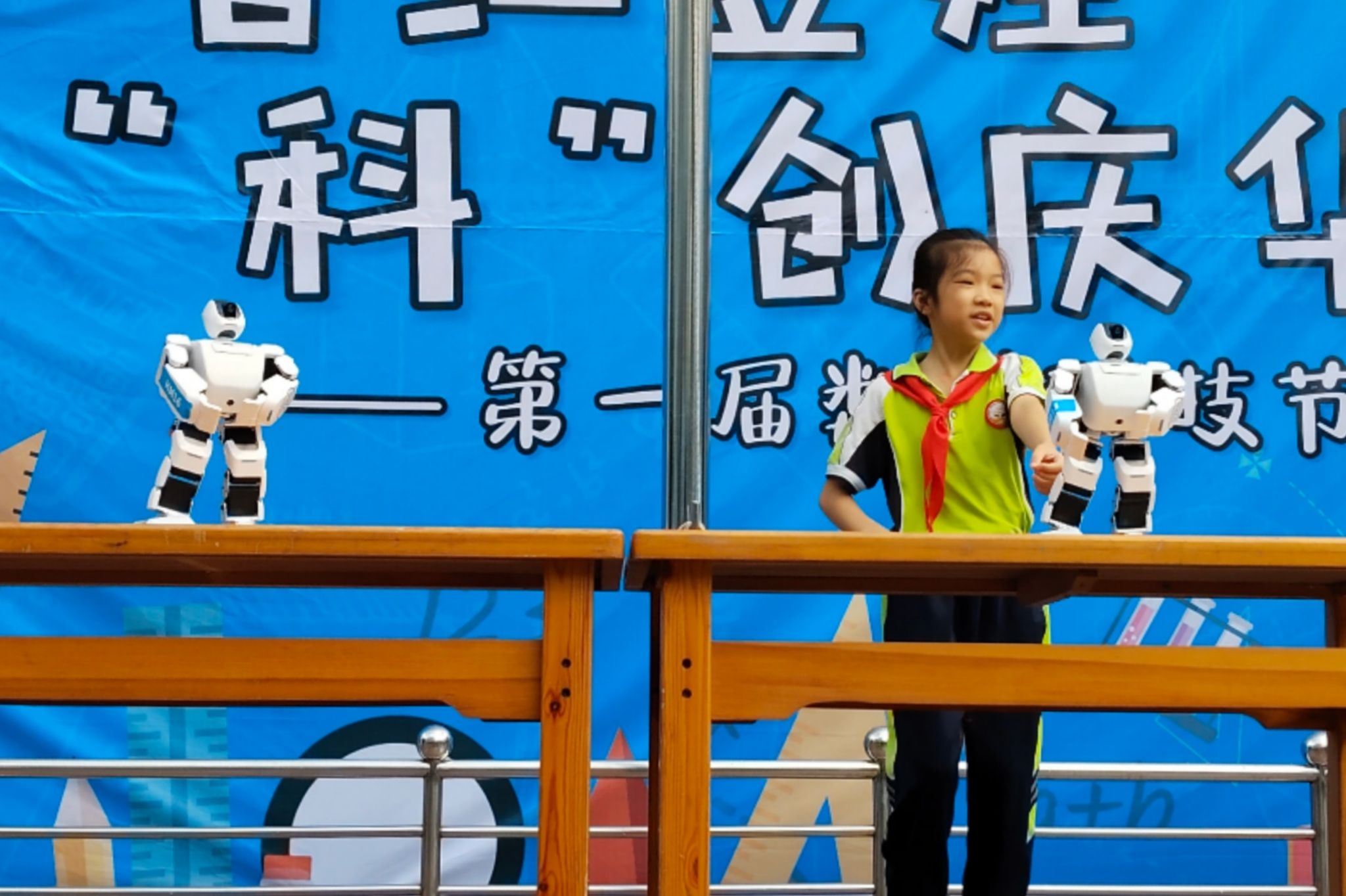 小朋友和机器人共舞