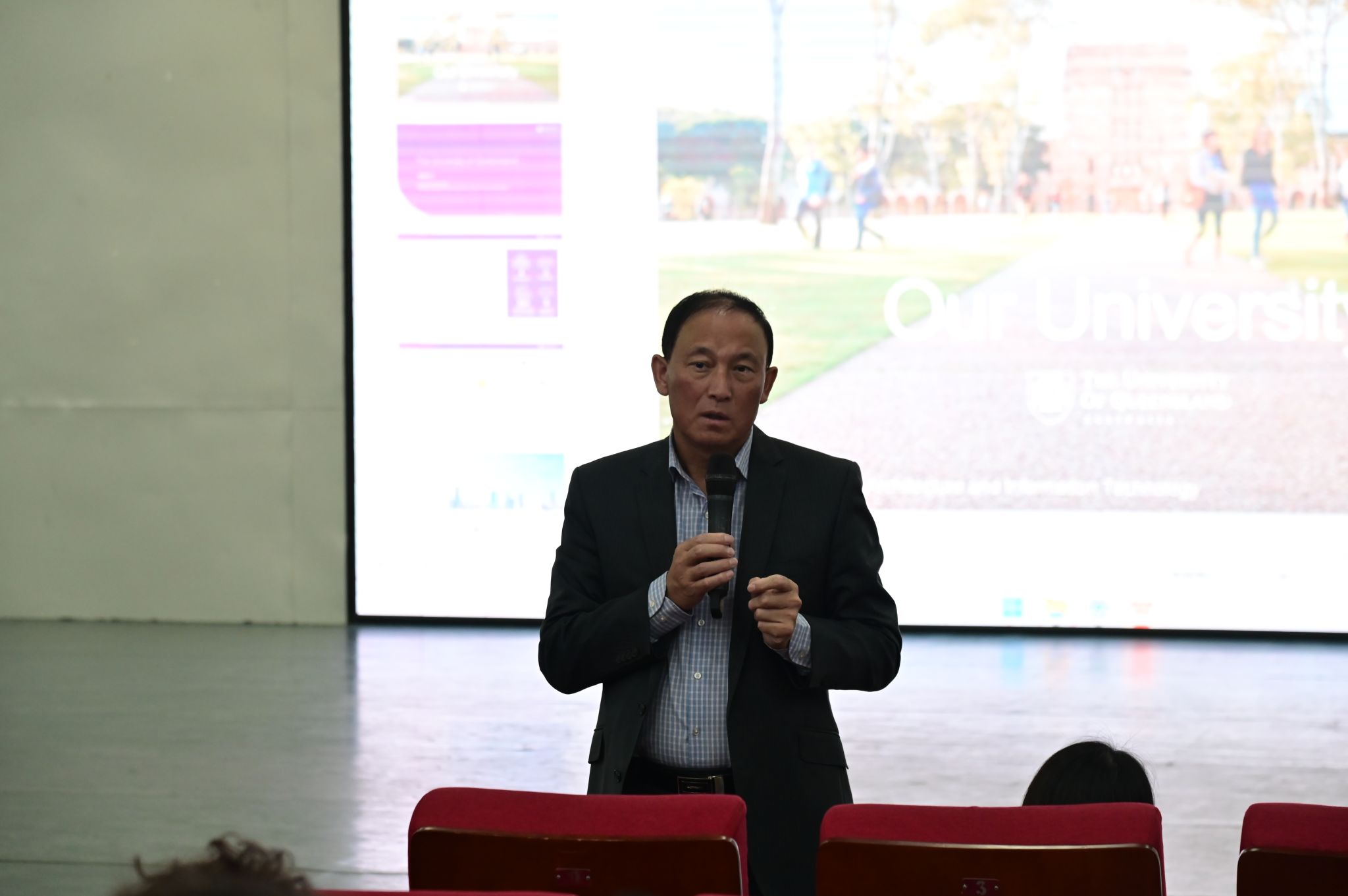 昆士兰大学代表团教师就该校的校园环境、发展概况、专业分布、课程设置、人才培养、学生社团活动、科研设施及学生支持等方面的内容作了详细的介绍,并表示对同学们赴澳的学习、生活充满期待。