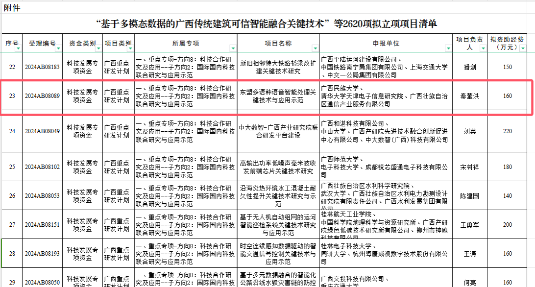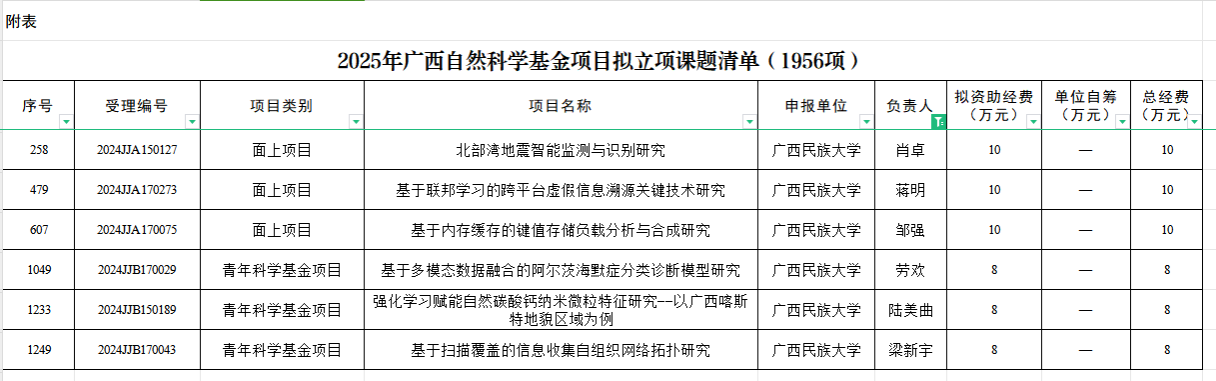 12月5日,广西壮族自治区科学技术厅对“十四五”广西科技计划项目拟立项项目进行公示。我院副院长秦董洪获广西重点研发计划项目拟立项,肖卓、蒋明、邹强、劳欢、陆美曲、梁新宇等六位老师获广西自然科学基金项目拟立项。