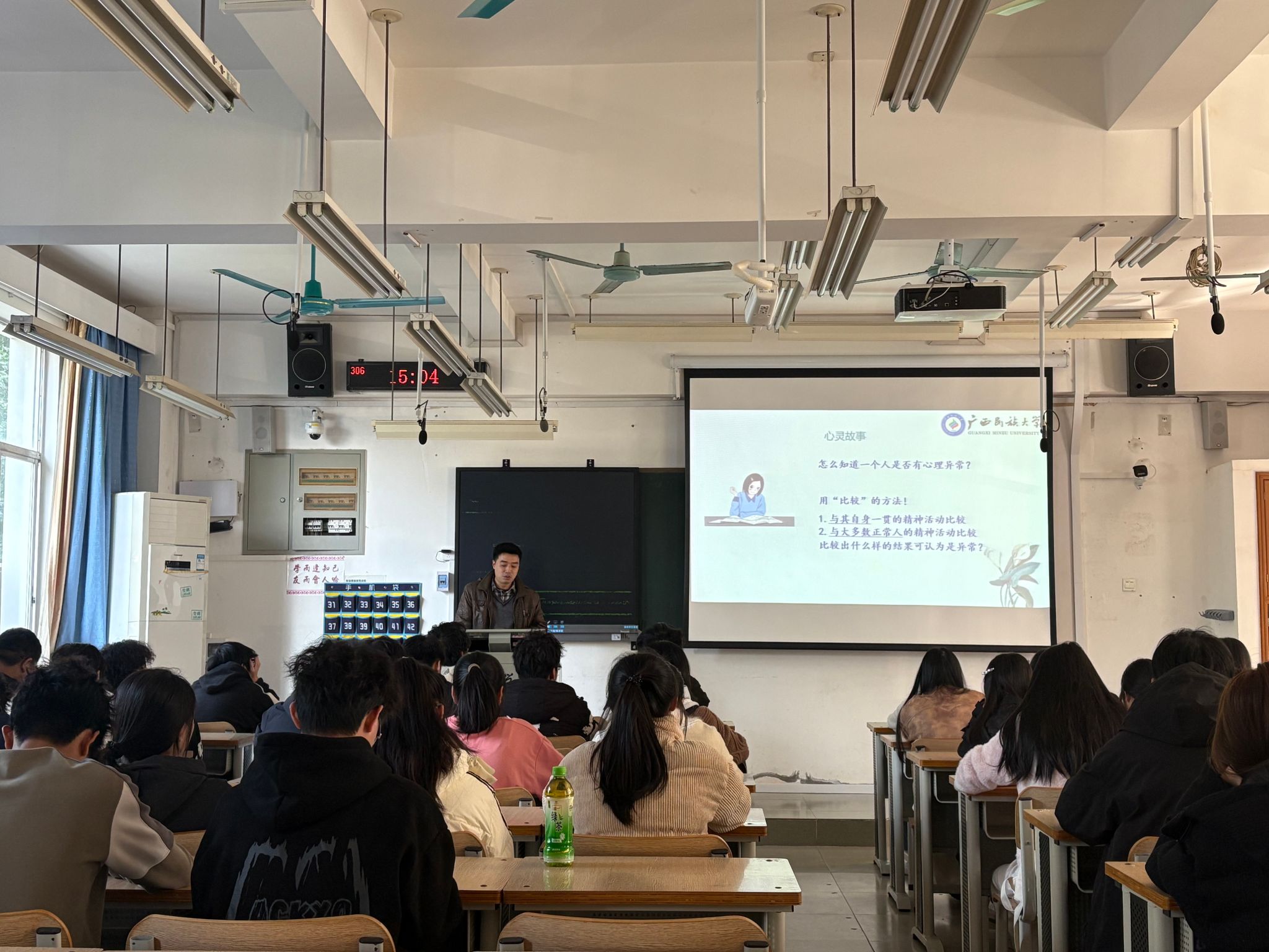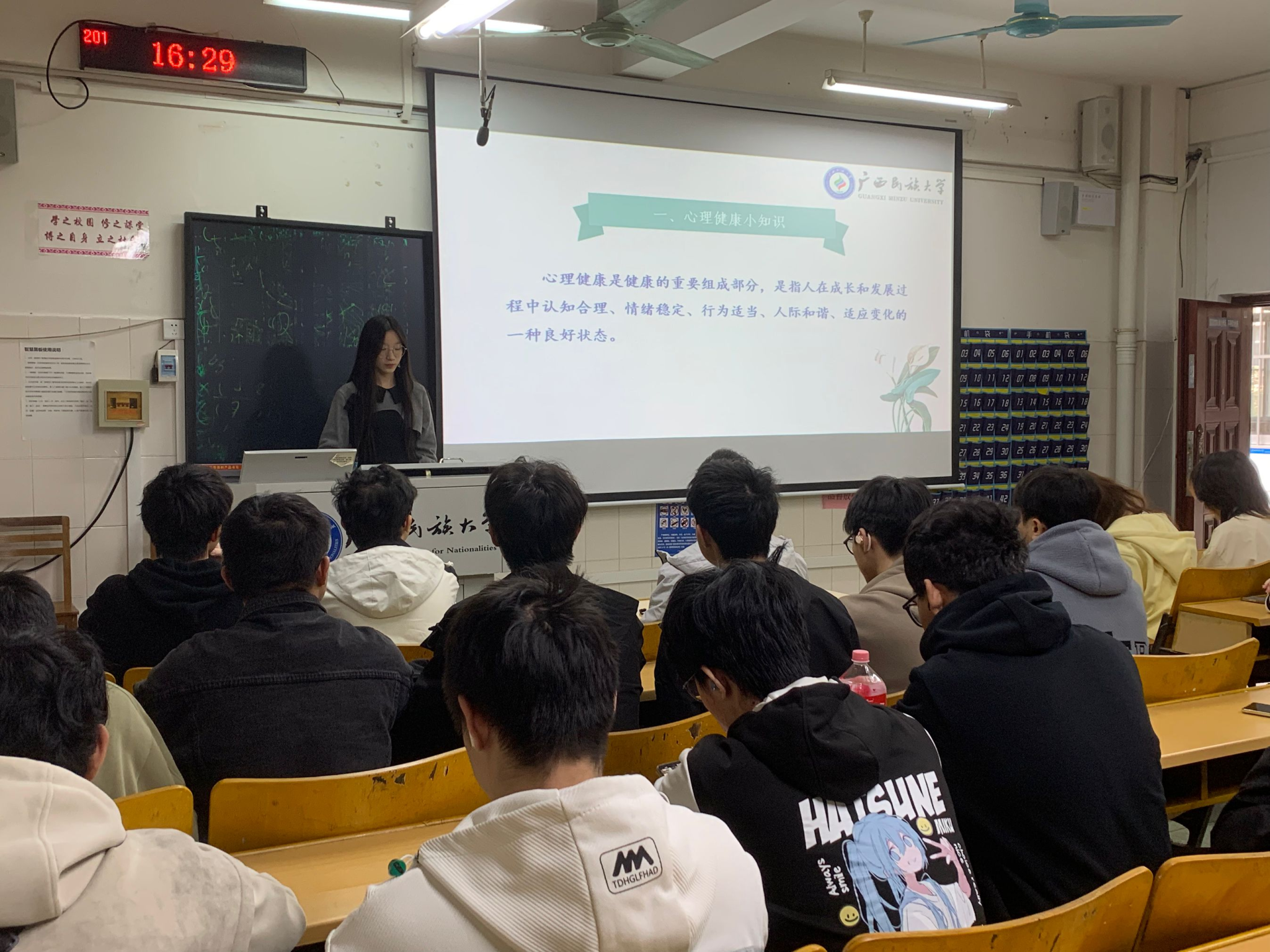 班会中,各班班主任、心理委员通过生动的案例向同学们阐述了心理健康的重要性以及如何识别心理异常的方法,鼓励同学们在面对学业压力时注意劳逸结合,调整心态;面对人际和家庭关系问题时,尊重和理解,并进行有效沟通;通过运动、听音乐、转移注意力等方式方松心情,避免被焦虑、抑郁和烦躁等负面情绪长久困扰。另外,在遇到心理问题时要积极与班主任、辅导员进行沟通交流,或拨打学校心理中心热线,寻找更为有效的解决方法。