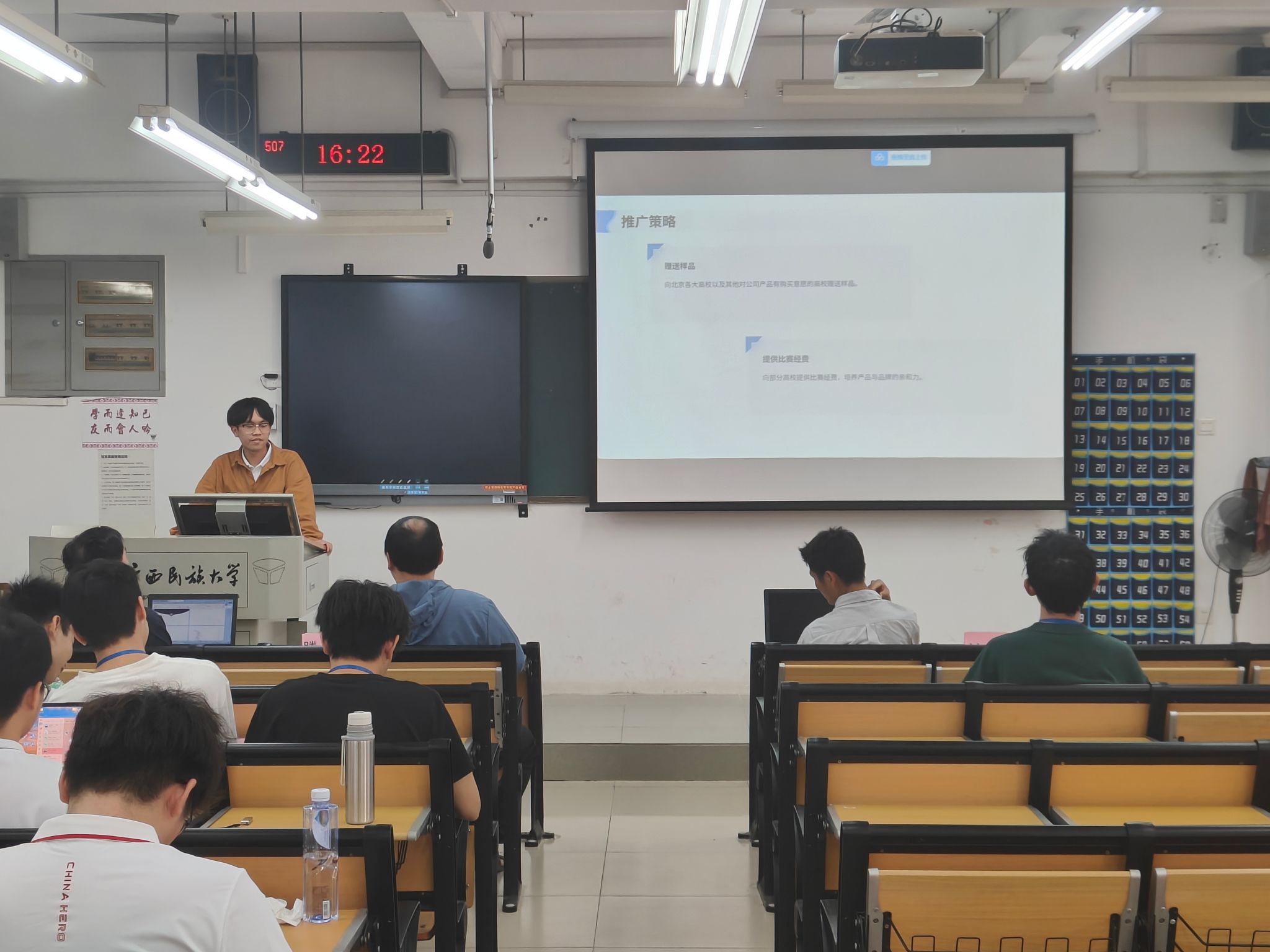比赛中,参赛各团队通过PPT展示及现场讲解,全方位、多角度地呈现各自项目的特色亮点、创新核心、团队构成优势及市场前景。从科技前沿的创新产品开发,到贴近生活的商业模式革新,每一个项目都凝聚着同学们的智慧与创意。评委老师们则围绕项目可行性、创新性、市场竞争力等多维度进行点评。通过犀利的提问和深入的探讨,帮助各项目团队进一步理清思路、明确方向,为项目的后续完善和实际落地提供有力支持。