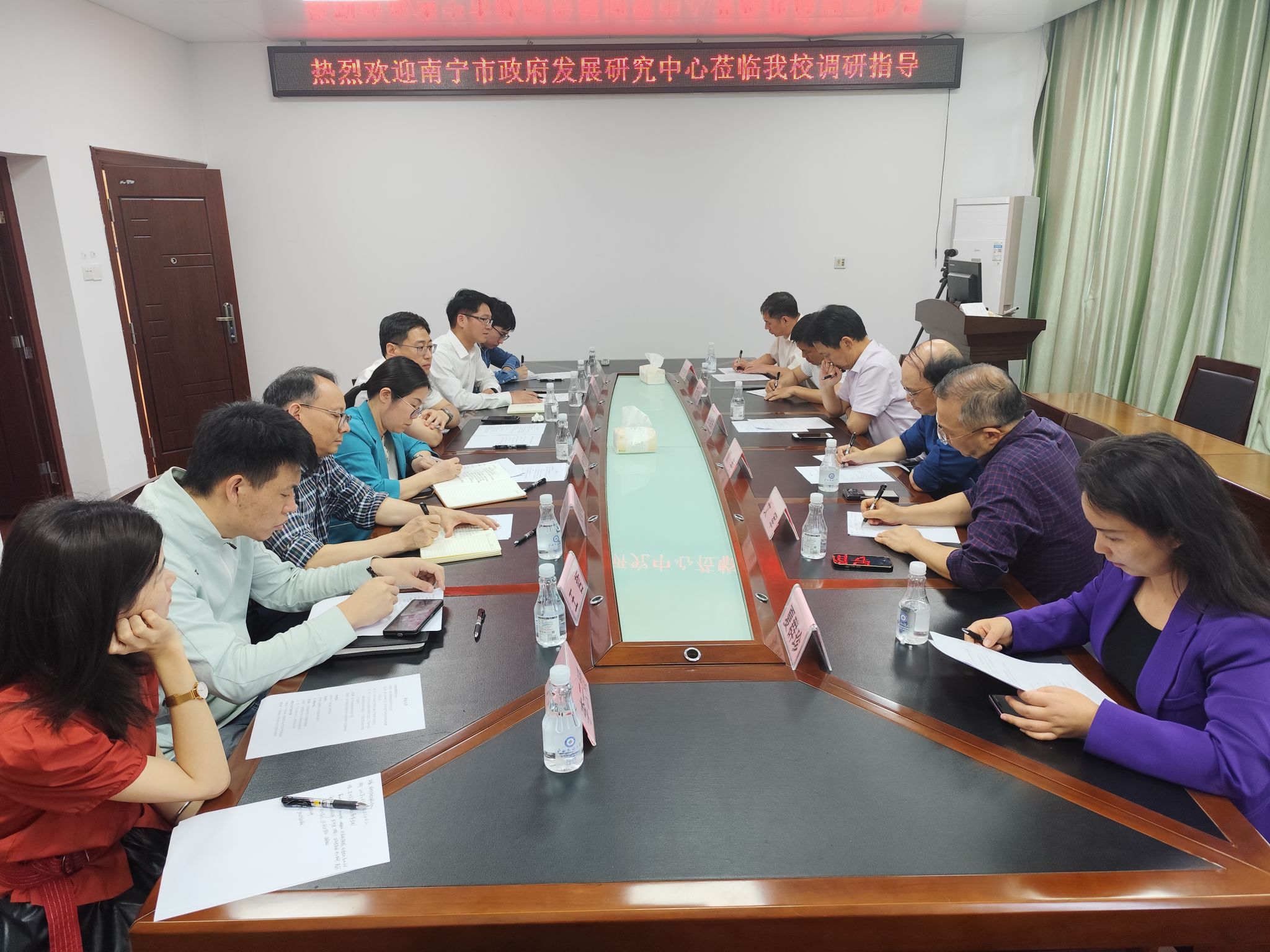 4月15日下午,南宁市政府发展研究中心主任佘国东率队莅临我校调研,学校党委常委、副校长高兴宇,betway必威西汉姆联院长葛丽娜、副院长文春明,物理与电子信息学院副院长卢振坤等接待并于博达楼405开展交流。