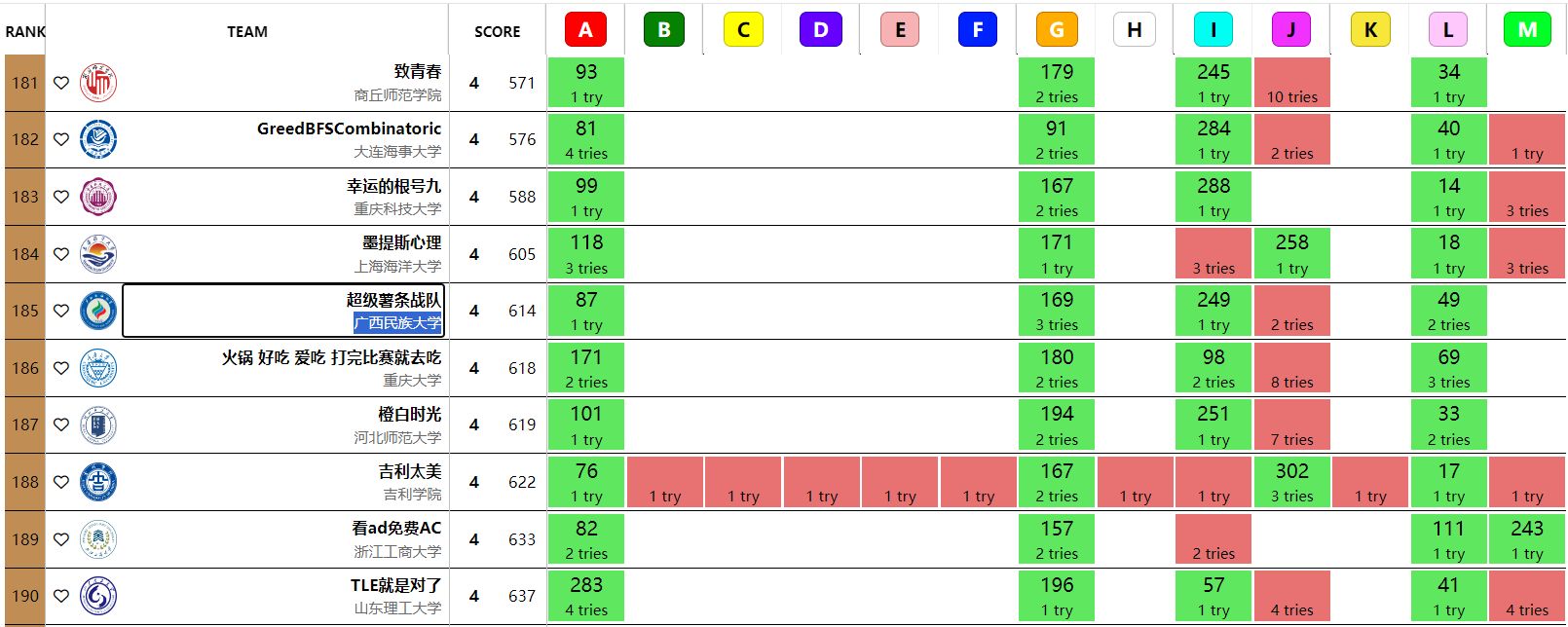 我院参赛队伍成绩排名