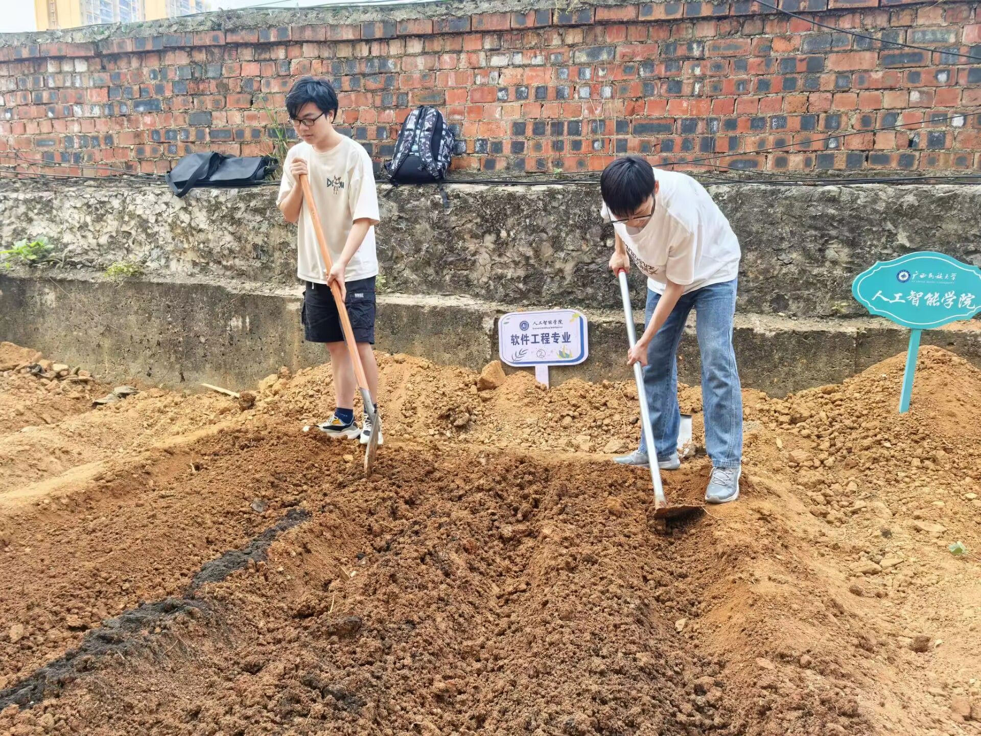 我院采用班级包片负责制,特别邀请广西农业职业技术大学的专业老师担任劳动导师。劳动导师亲身示范松土、放苗、填土、浇水等关键环节,并详细讲解农业种植的相关知识和技术要点,确保同学们在劳动过程中能够掌握正确的实践技能。同学们认真聆听、仔细观察、提出疑问,现场氛围十分浓厚。在耕作环节,同学们挥耙除草、执锄松土、起垄做畦,分工明确,配合默契。大家互帮互助、协同合作,共同翻整土地、种下菜苗、播下瓜种。