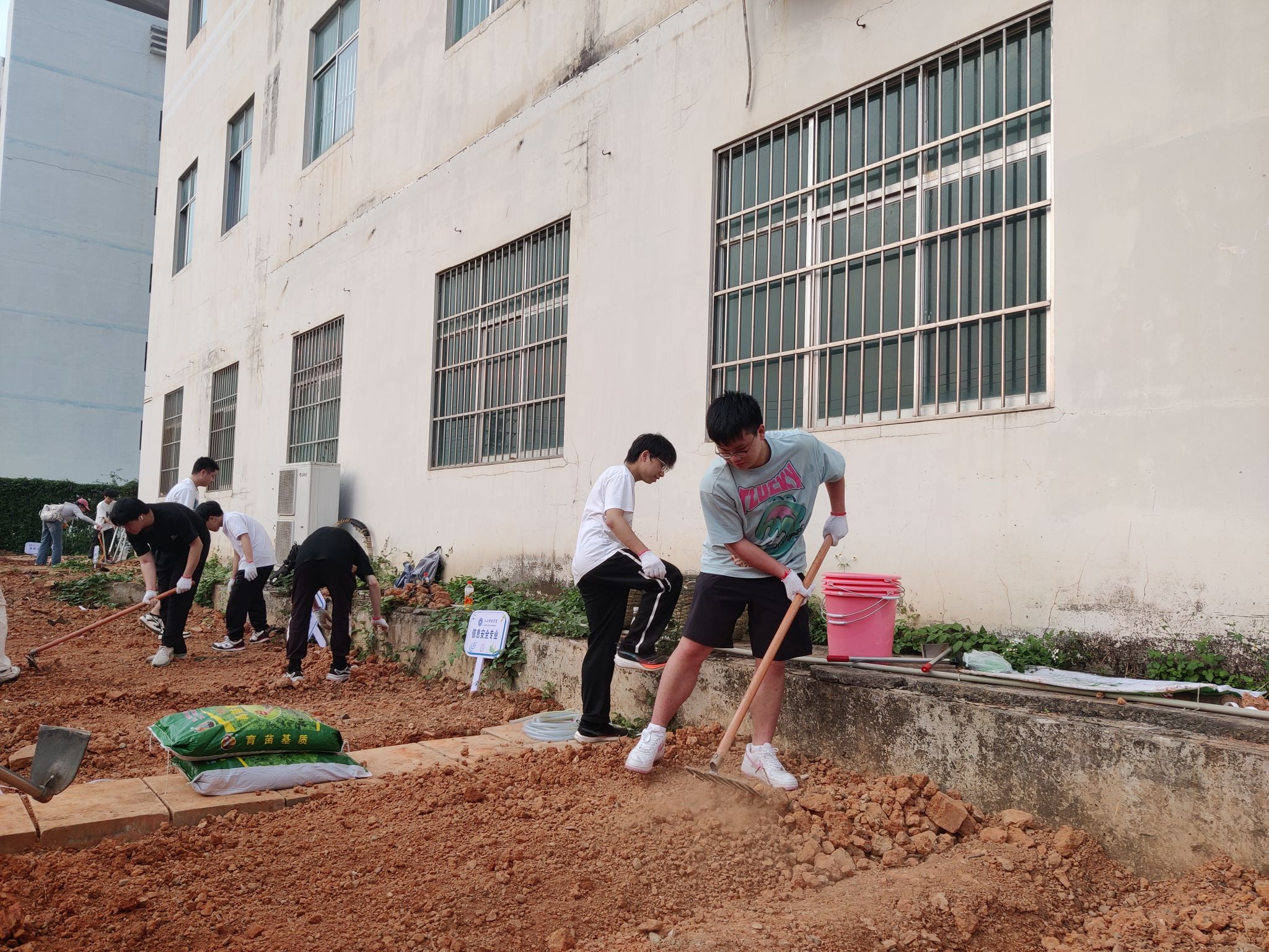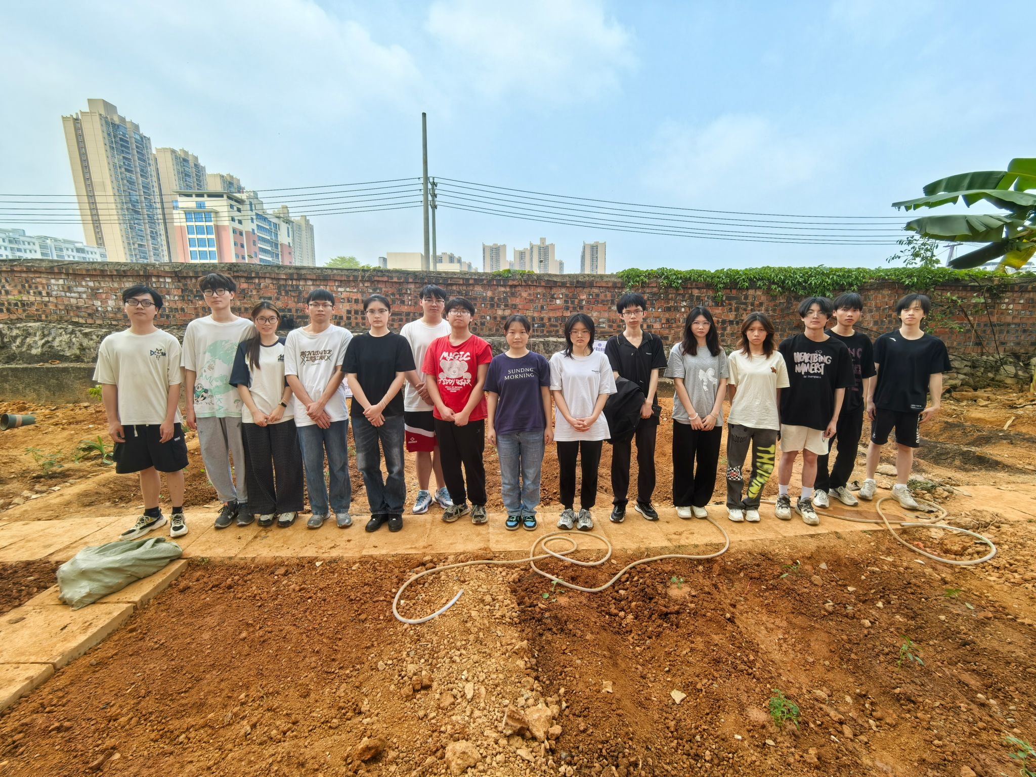 参加劳动的同学合照