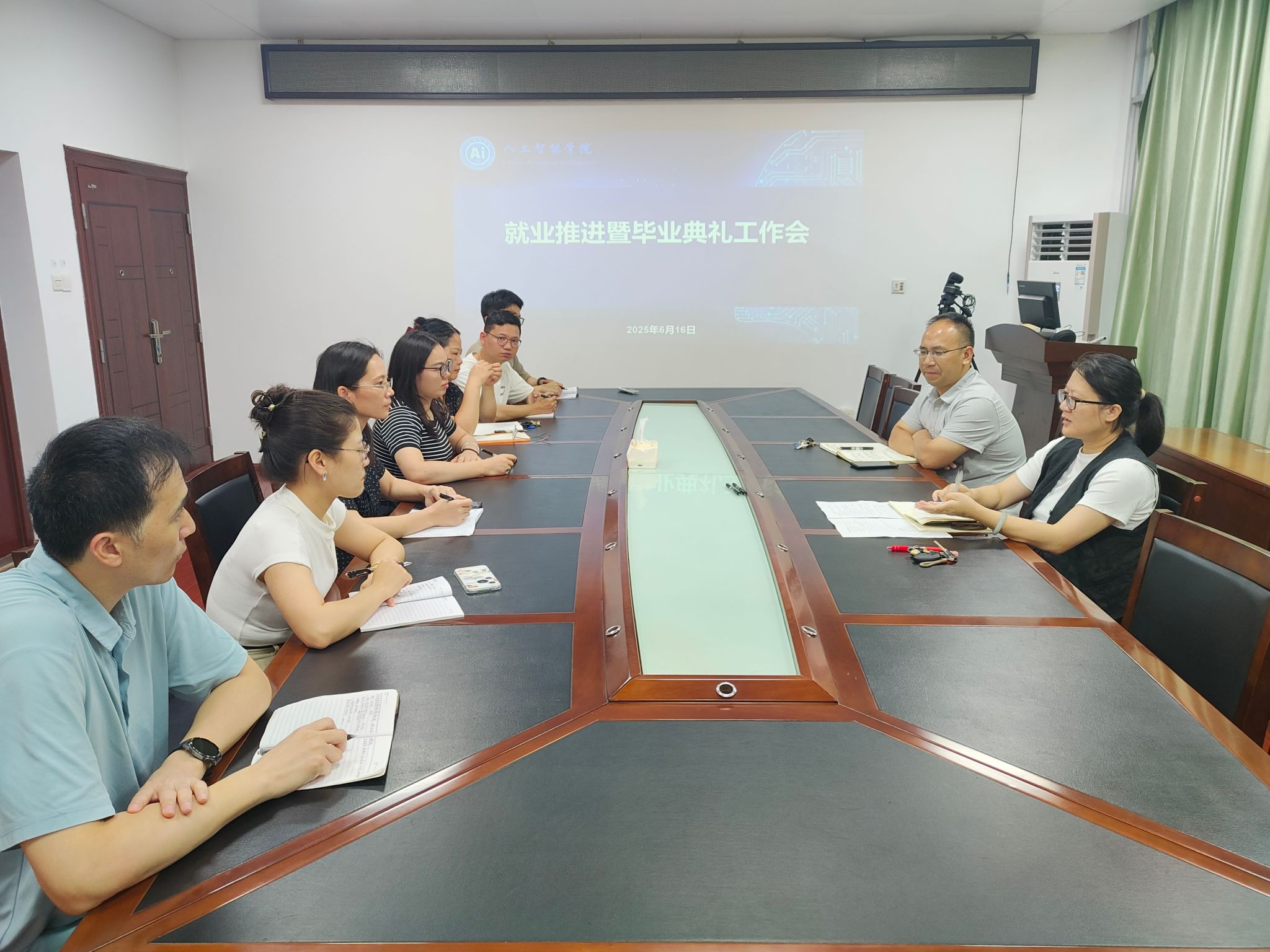6月16日下午,我院在博达楼405室开展就业推进会暨毕业典礼工作布置会,我院党委书记刘志雄、副书记潘彦燕及全体毕业班班主任、辅导员参加会议。