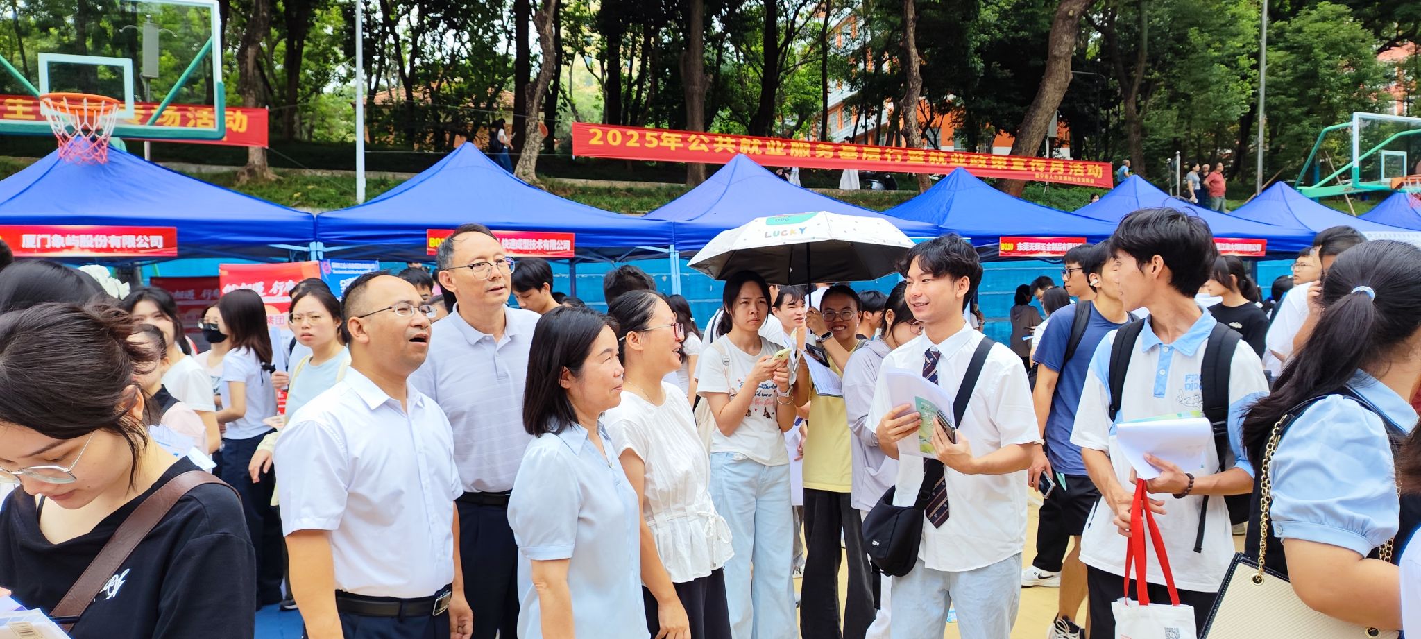 9月21日上午,我校2026届毕业生秋季首场大型双选会暨就业服务启动仪式在相思湖校区灯光球场顺利举行。我院积极组织2026届毕业生到场参与,学院党委书记刘志雄、院长葛丽娜、副书记潘彦燕、副院长文春明以及毕业班班主任亲临现场,深入了解双选会情况,为毕业生提供指导。