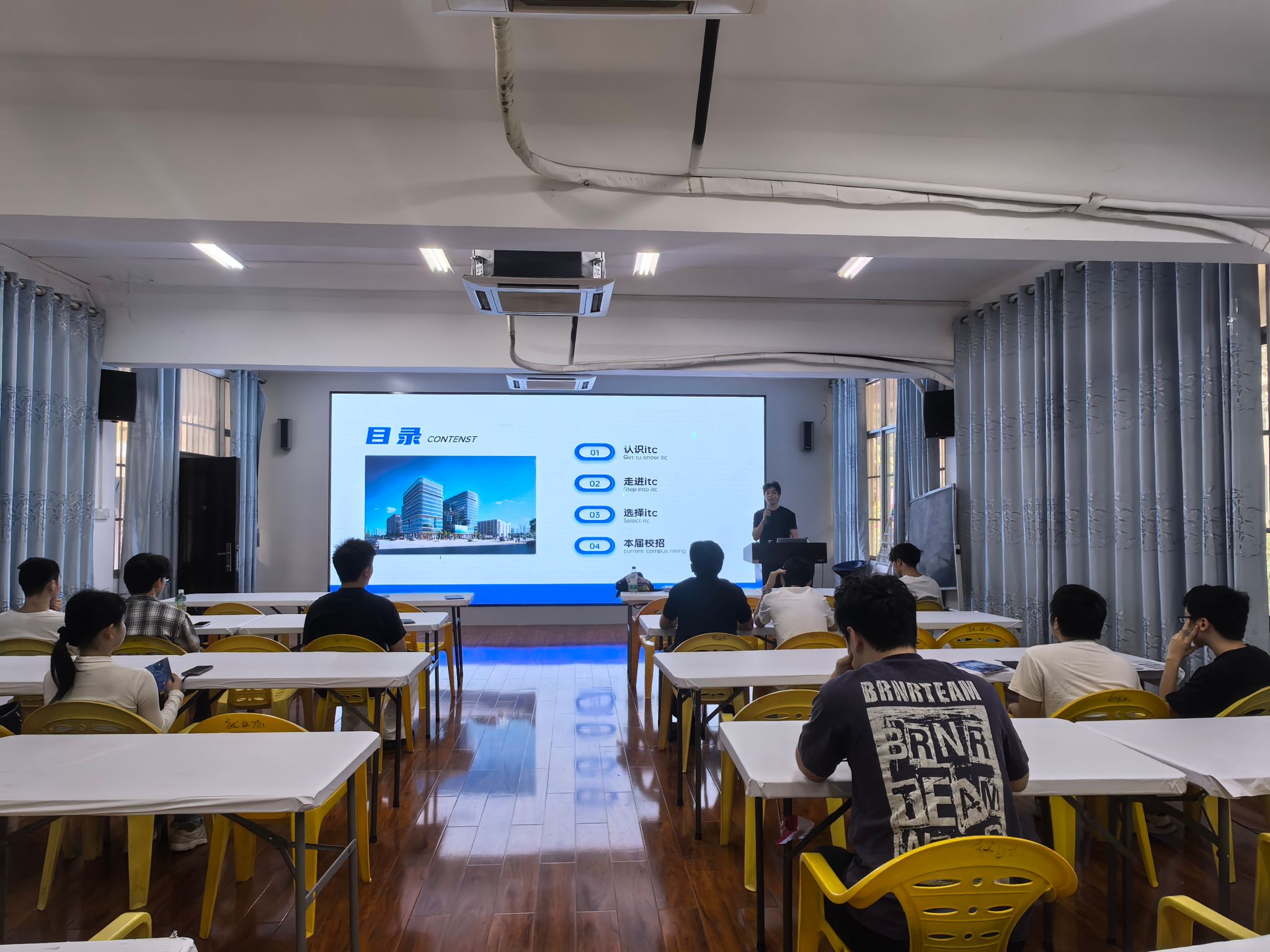 招聘宣讲会围绕“认识itc—走进itc—选择itc—本届校招”四大板块进行宣讲。宣讲代表简要介绍了公司的基本概况,详细介绍了本次招聘的C++开发、AI算法、技术工程师等岗位详情,明确任职要求与网申地址,并现场解答毕业生们关于简历、面试的疑问。宣讲会后,公司现场接收毕业生简历,并对学生进行面试。