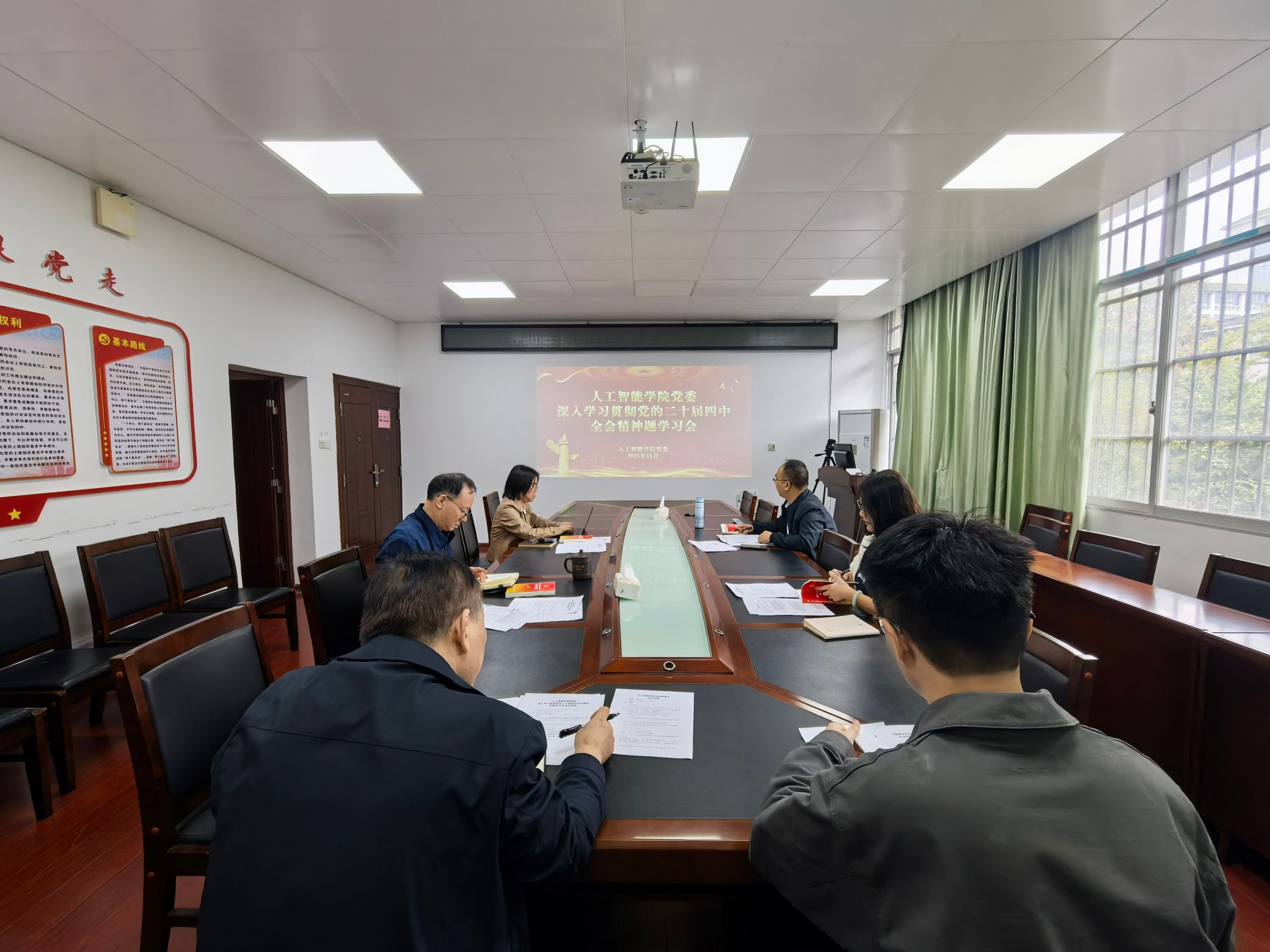 11月10日上午,我院党委在博达楼405会议室召开专题学习会,专题学习贯彻党的二十届四中全会精神。学院党委书记刘志雄主持会议,党委副书记、院长葛丽娜,党委副书记潘彦燕及党委委员、副院长文春明参加会议,办公室主任及组织员列席会议。