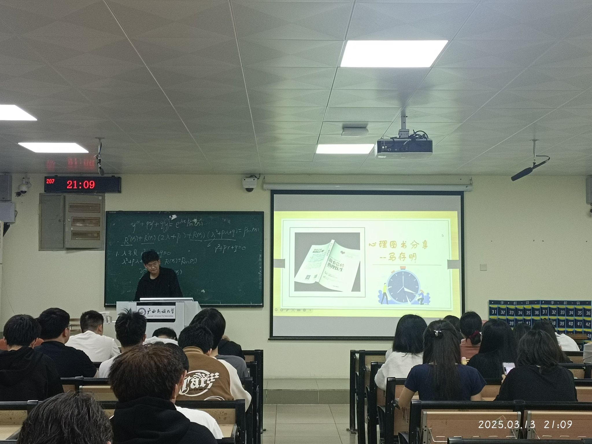 10月10日晚,24级计算机科学与技术4班于博达楼406室举办了以“大学生心理健康教育”为主题的分享会,共同探讨《做自己的心理医生》一书。主讲人马存明系统梳理了书籍要点,结合大学生常见的心理困扰,深入剖析其成因并提出切实可行的解决方案。他还分享了自己的阅读感悟,并耐心倾听同学们的困惑,引导大家掌握情绪调节的方法。