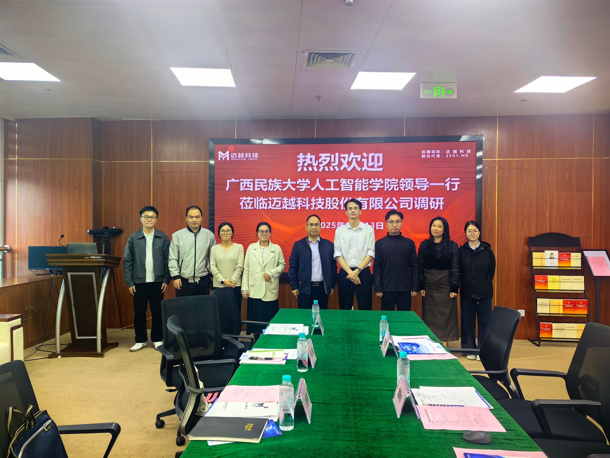 在迈越科技股份有限公司相关负责人的陪同下,我院一行参观了迈越科技人工智能展厅,直观了解了企业的技术研发与业务布局情况。座谈会上,迈越科技相关负责人介绍了公司的发展历程、核心业务领域及人才需求现状,并重点展示了在人工智能应用场景中的技术优势与产品成果。随后,刘书记围绕学生实习与实践、专场宣讲招聘、教师合作三个方面展开交流,期望构建稳定的校企联系,使学生能提前接触企业项目,提升实操技能,并推动教师深入企业一线,积累行业经验。迈越科技人力资源副总监积极回应,明确提出与我院共建实习实践基地的合作意向;在就业招聘方面,企业倾向吸纳南宁本地就业、专业课程匹配的应用型本科人才;教师合作上,欢迎学院教师挂职锻炼,共同开展科研项目研发与成果转化,实现资源共享、互利共赢。