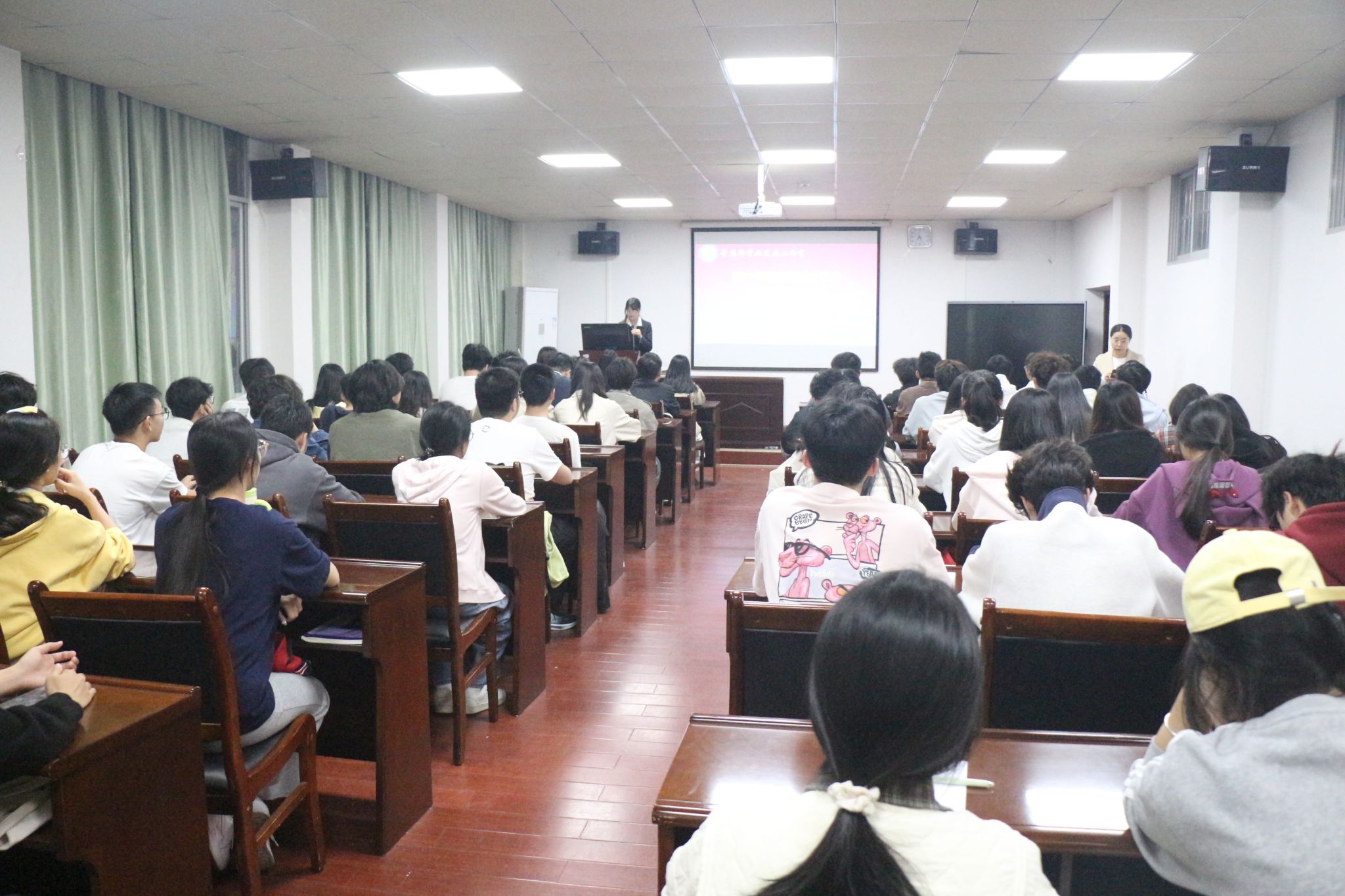 分享会以“科学冲刺、精准提分”为核心要义,围绕听力、阅读、写作与翻译等核心板块展开。学院特邀外国语学院的学长学姐作为分享嘉宾,他们结合自身备考经验,系统梳理了各类题型的解题思路与应试技巧,并针对考前常见的复习误区与心态波动提供了切实可行的建议。在互动答疑环节,学生们围绕词汇积累、答题节奏把控、错题复盘等高频问题积极提问,学姐们结合具体实例进行了细致解答。