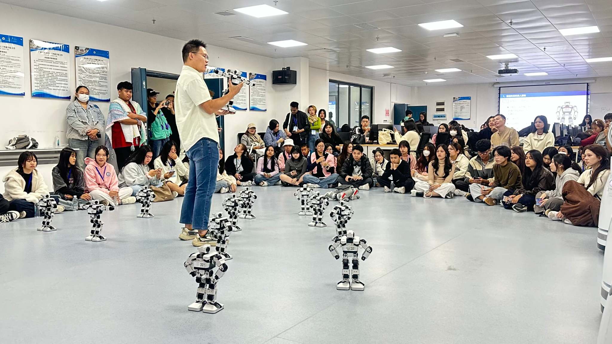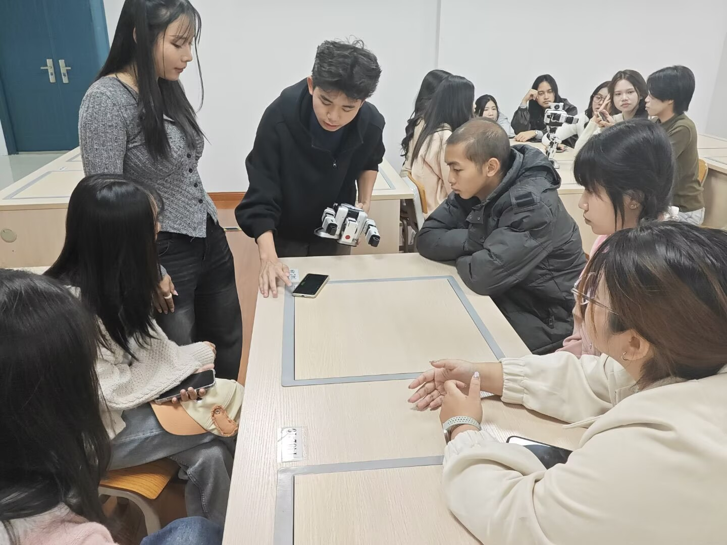 为推动中泰青少年之间的文化交流,12月3日,我院人工智能科技社于文综楼1406教室顺利开展了中泰青年交流研学营活动。本次活动以“科技+文化”为特色,通过校园文化介绍与智能机器人展示,为多名泰国中学生代表打造了一场别具一格的跨国交流体验,有效促进了中泰青少年之间的友好互动。