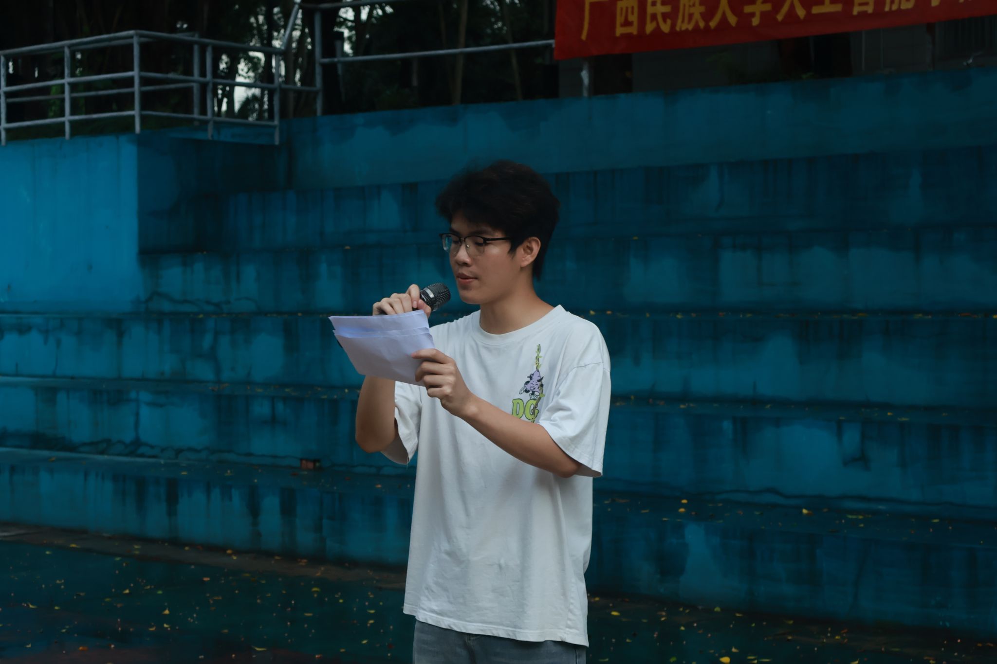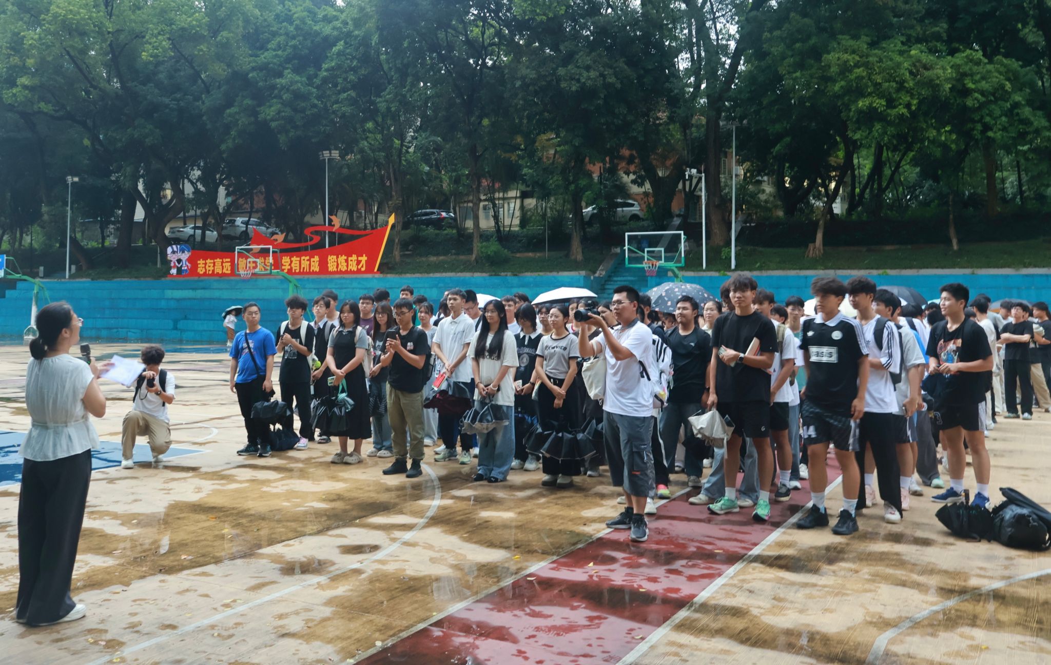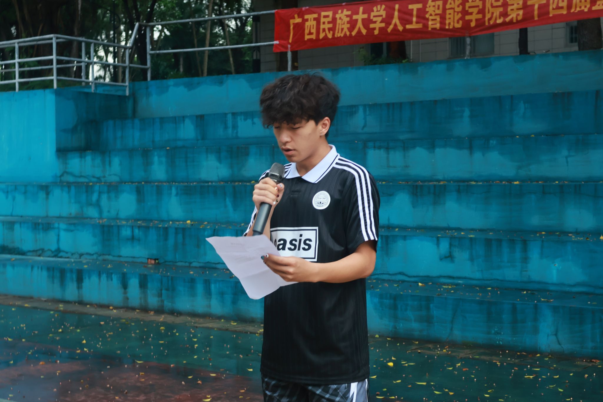 随后,2024级人工智能1班的黄仪行同学作为裁判员代表发言。他郑重承诺,将恪守体育职业道德,严格执行竞赛规则,坚持公平、公正的执裁原则,努力为运动员提供良好的竞赛环境,确保本届篮球赛裁判工作顺利进行。