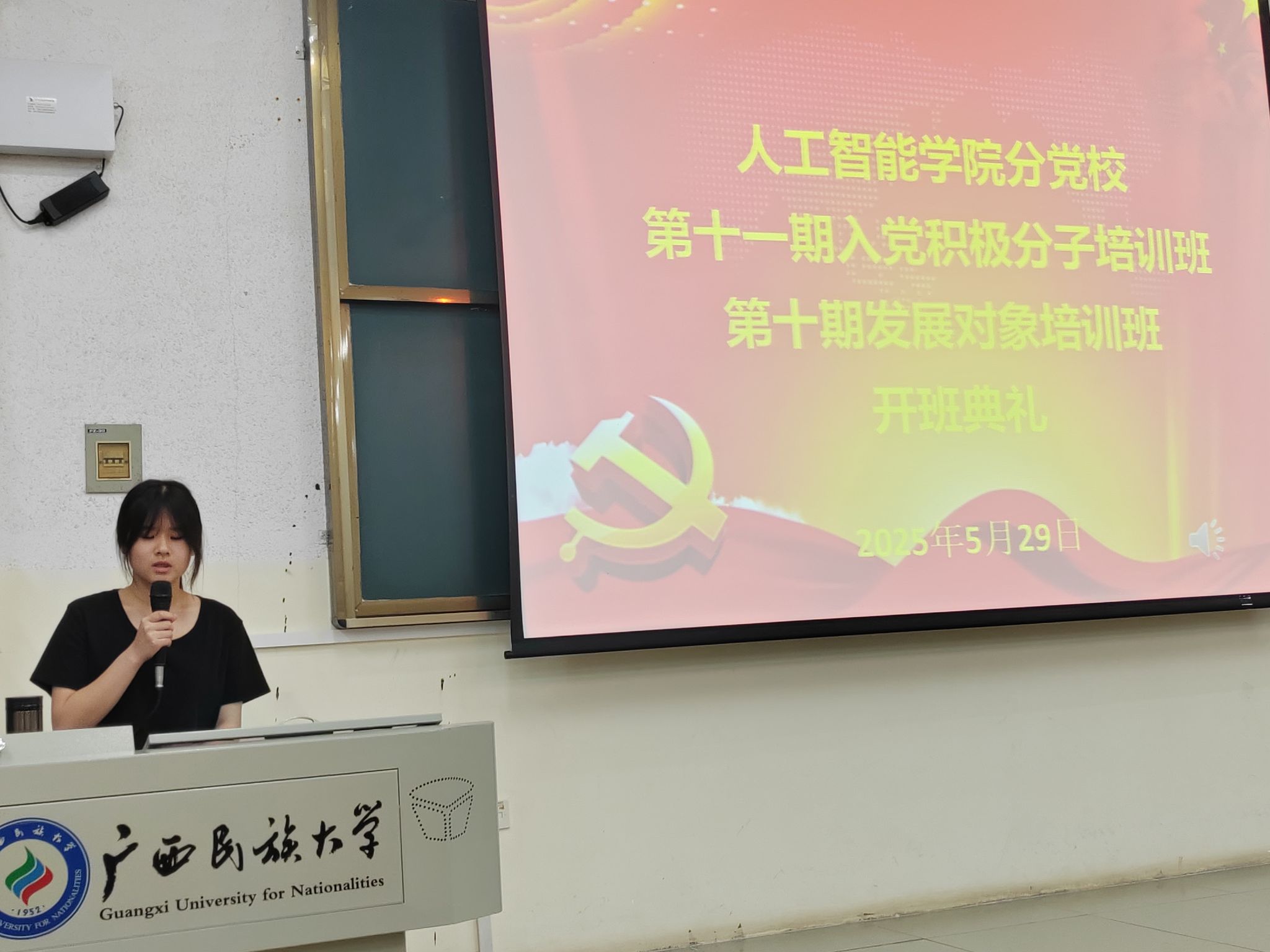 本次开班仪式在庄严的国歌中拉开帷幕。2024级软件工程1班石婷婷代表本期党校培训班学员发言。她向全体学员发出倡议:一是端正态度,以饱满的热情和认真的态度投入到学习中去;二是知行合一,将所学知识与实践相结合;三是遵守纪律,服从管理,共同营造一个良好的学习氛围。2023级信息安全1班李佳作为党员代表发言时说:“作为新时代的大学生党员,我们要做理想信念的坚守者,用党的创新理论武装头脑;做勤学善思的排头兵,以过硬本领服务社会发展;做知行合一的实干家,在志愿服务、创新创业中展现担当。”