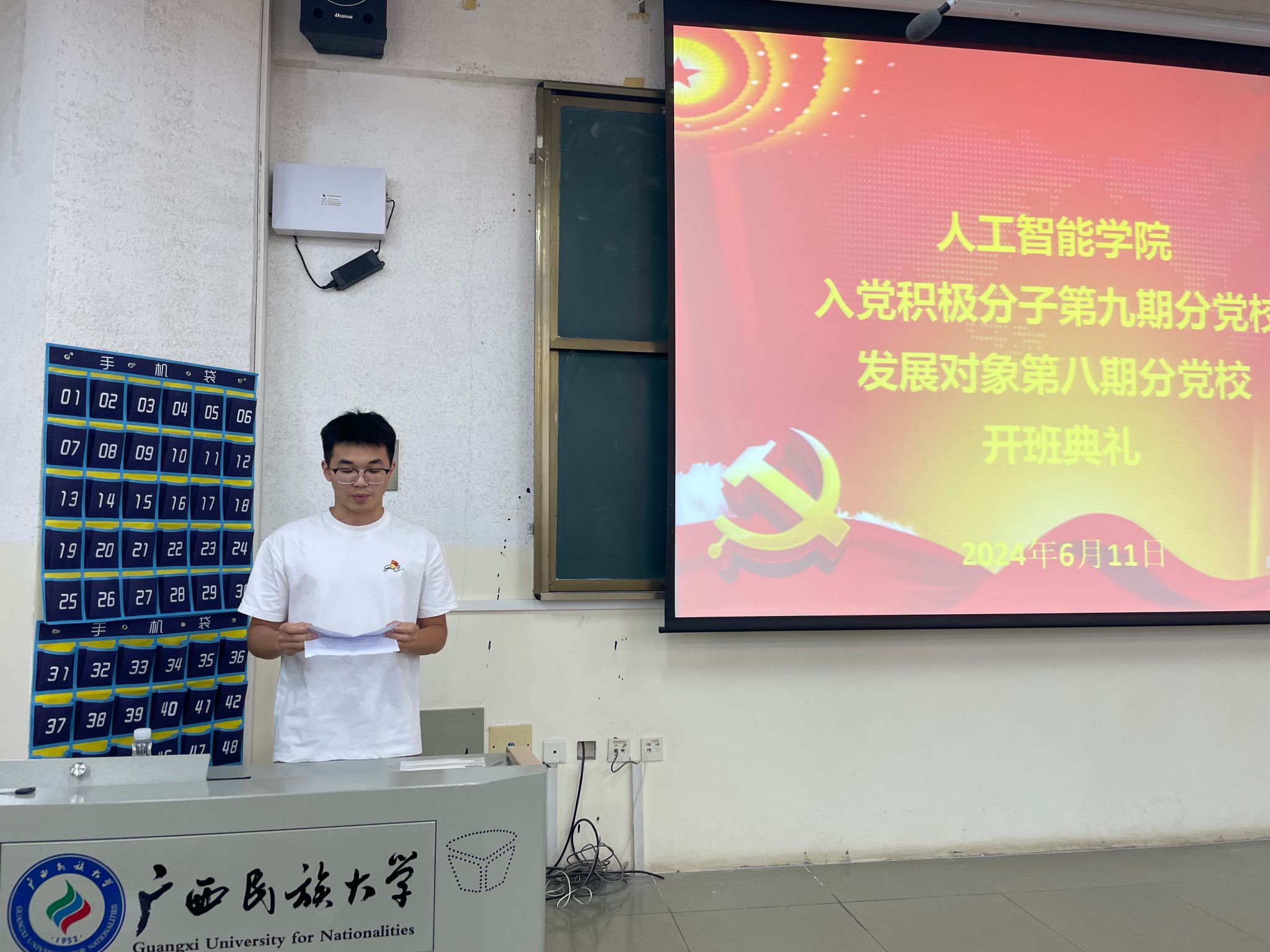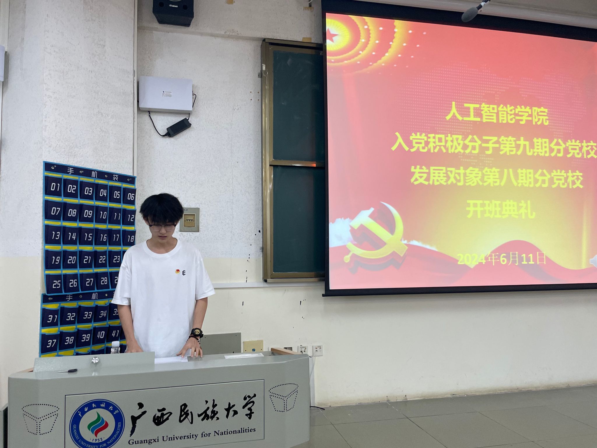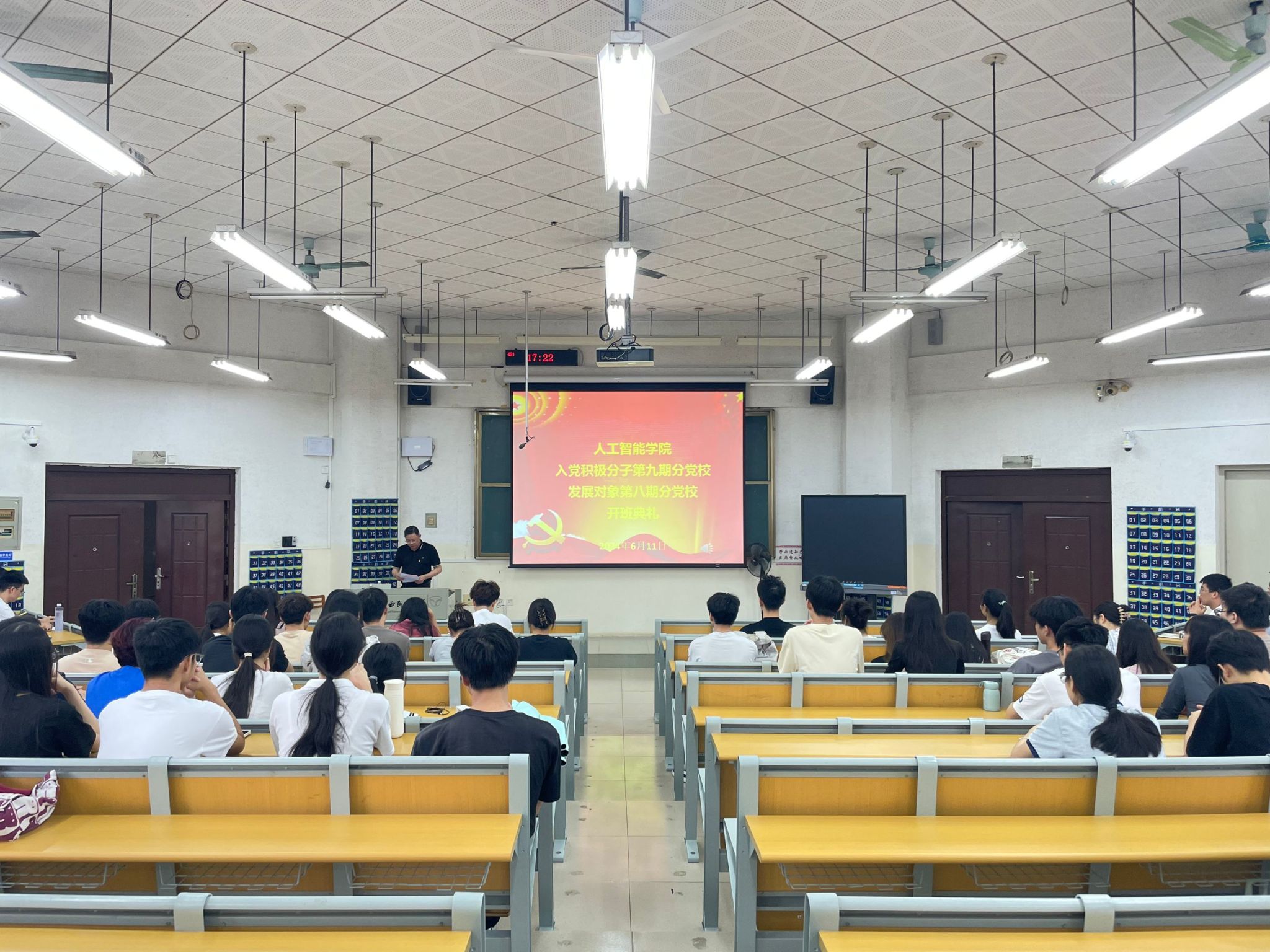 2023级智能科学与技术1班丁嘉豪代表本期党校培训班学员进行发言,他表示:“我们要珍惜这次难得的学习机会,以饱满的热情和认真的态度投入到学习中去;要将所学知识与实践相结合,不断提高自己的实践能力和创新能力;要严格遵守党校学习中的各项规章制度,尊重老师,团结同学,共同营造一个良好的学习氛围。”