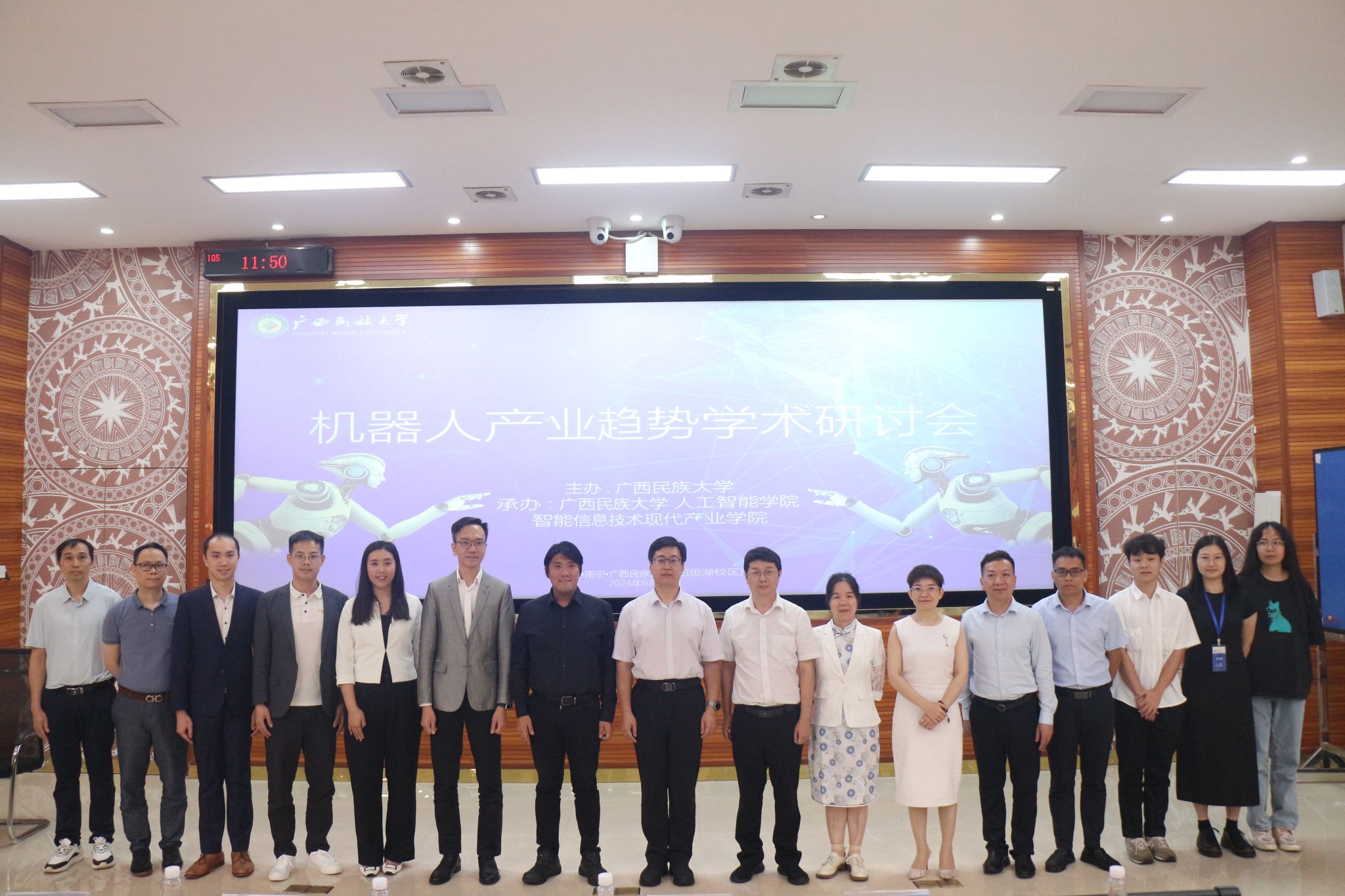 6月18日上午,广西民族大学在学友楼105报告厅举行机器人产业趋势学术研讨会。广西民族大学党委常委、副校长高兴宇出席研讨会并致开幕辞。betway必威西汉姆联院长葛丽娜主持会议,华润科学技术研究院机器人联合研究中心首席科学家麦骞誉、广东省科学院智能制造研究所装备自动化团队负责人周谦等一行8人及我院有关负责人和师生代表参加研讨会。