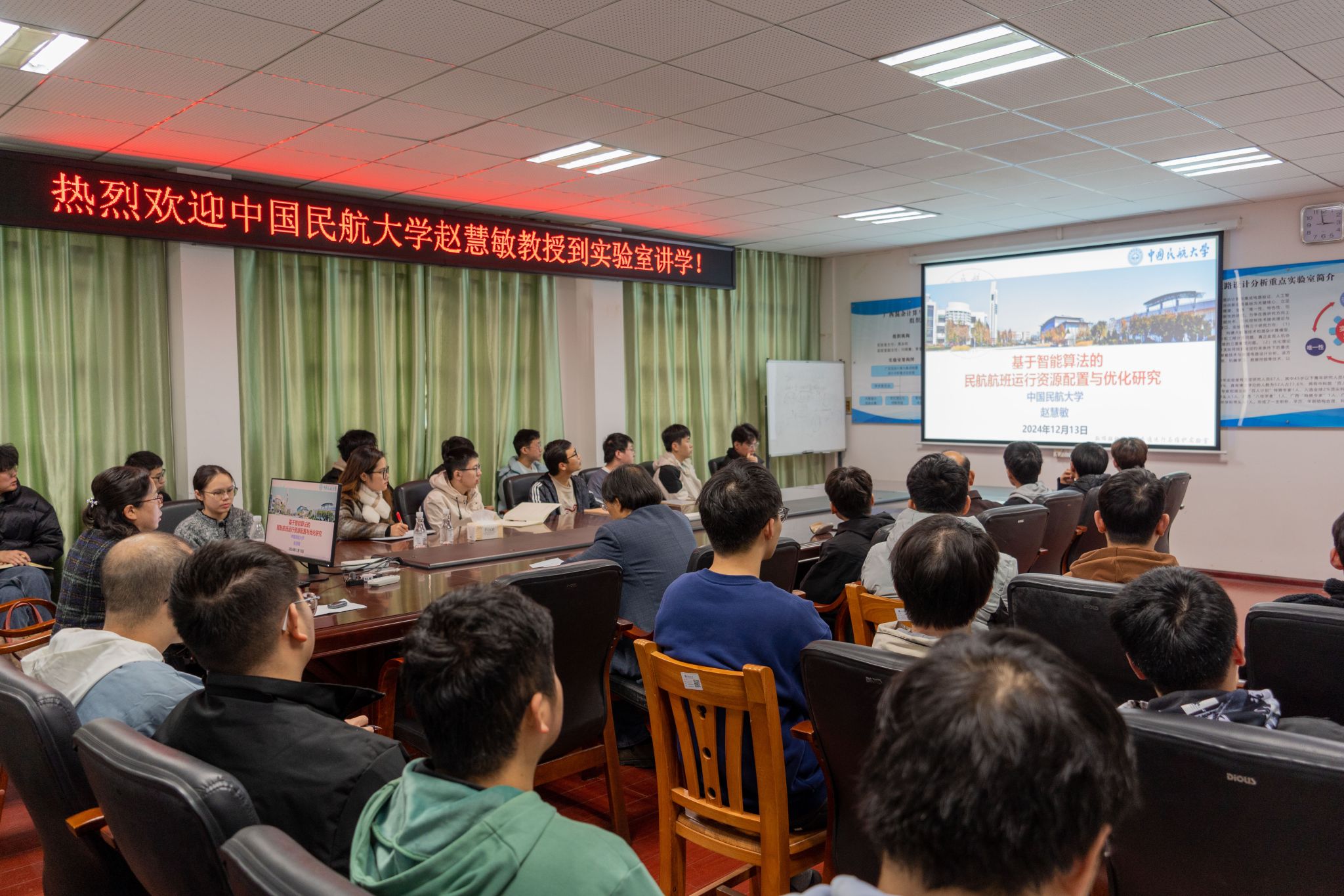 12月13日下午,我院于博达楼503室开展“基于智能算法的民航航班运行资源配置与优化研究”学术讲座。讲座邀请了中国自动化学会智能自动化专业委员会委员、全球前2%顶尖科学家、爱斯维尔“中国高被引学者”、辽宁省“百千万人才工程”百人层次、中国民航大学教授赵慧敏进行主讲,我院师生积极参与。